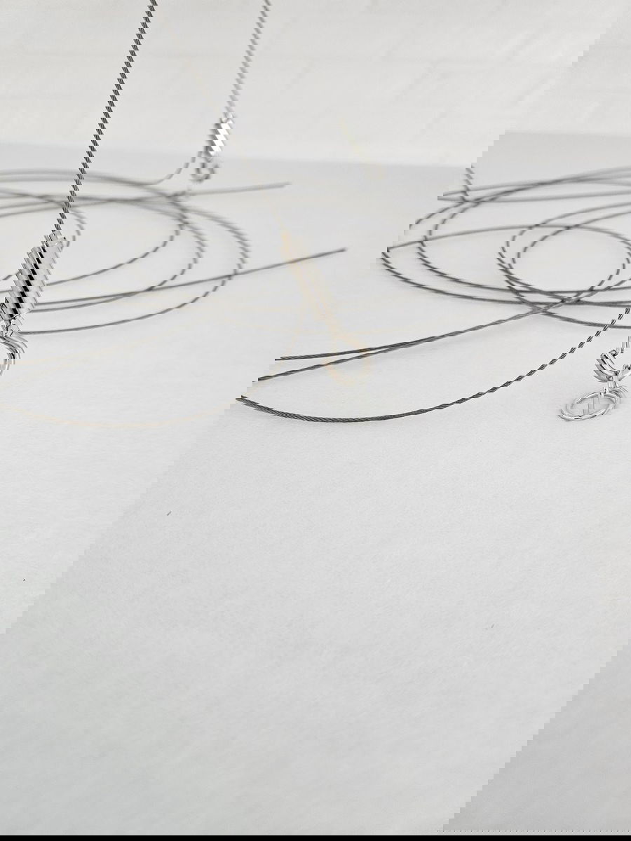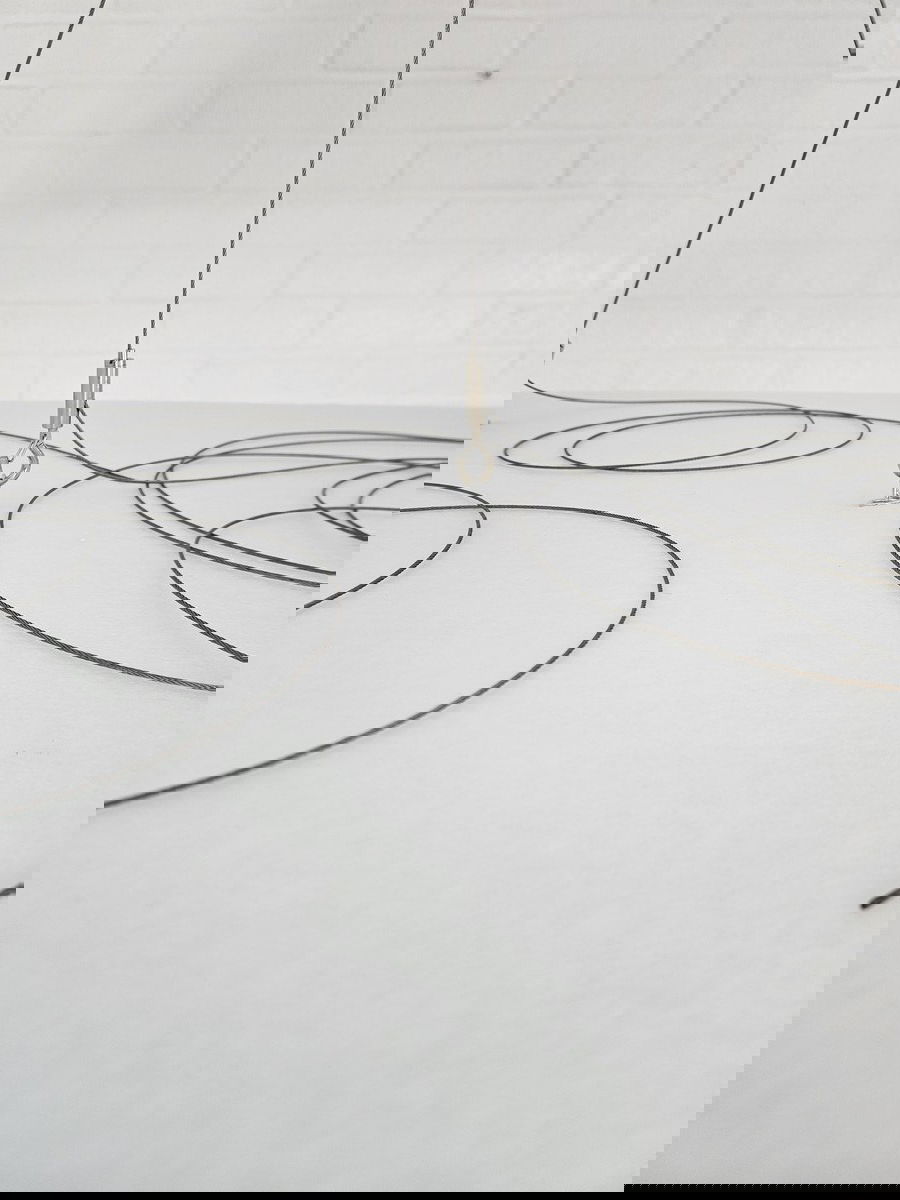 PES Circle Ceiling levereras med vajerkit anpassat efter storlek: 3 vajerkit för 600mm, 4 vajerkit för 800mm och 5 vajerkit för 1000mm. Varje kit innehåller en spiralfjäder, en 200 cm lång vajer med ögla i ena änden samt en karbinhake med justerbar klämma. På så sätt kan du enkelt justera höjden efter rummet. Observera att krokar för taket inte ingår, utan väljs beroende på vilket infästningssystem du har.