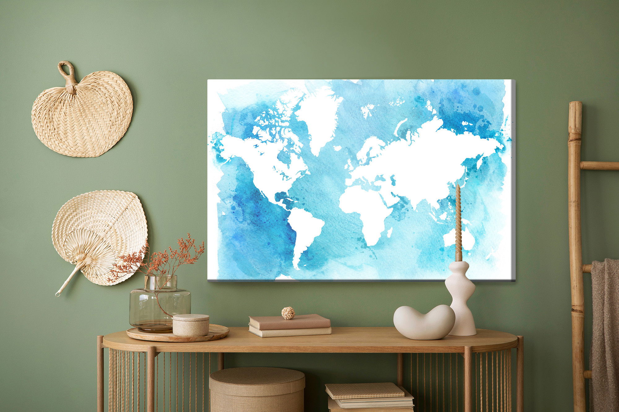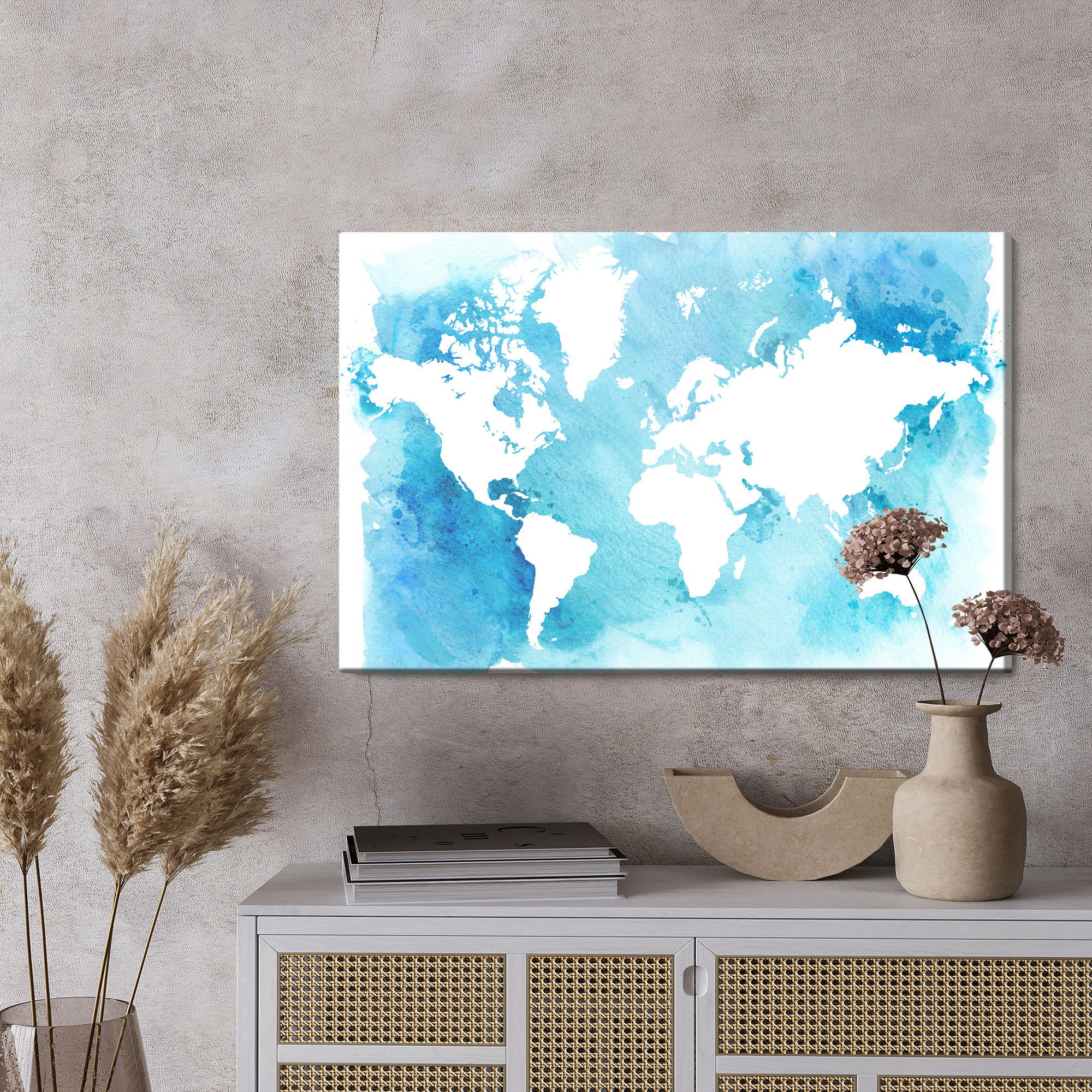 Ljuddämpande tavla – Blue and white world map för lugnare rum och mjukare akustik