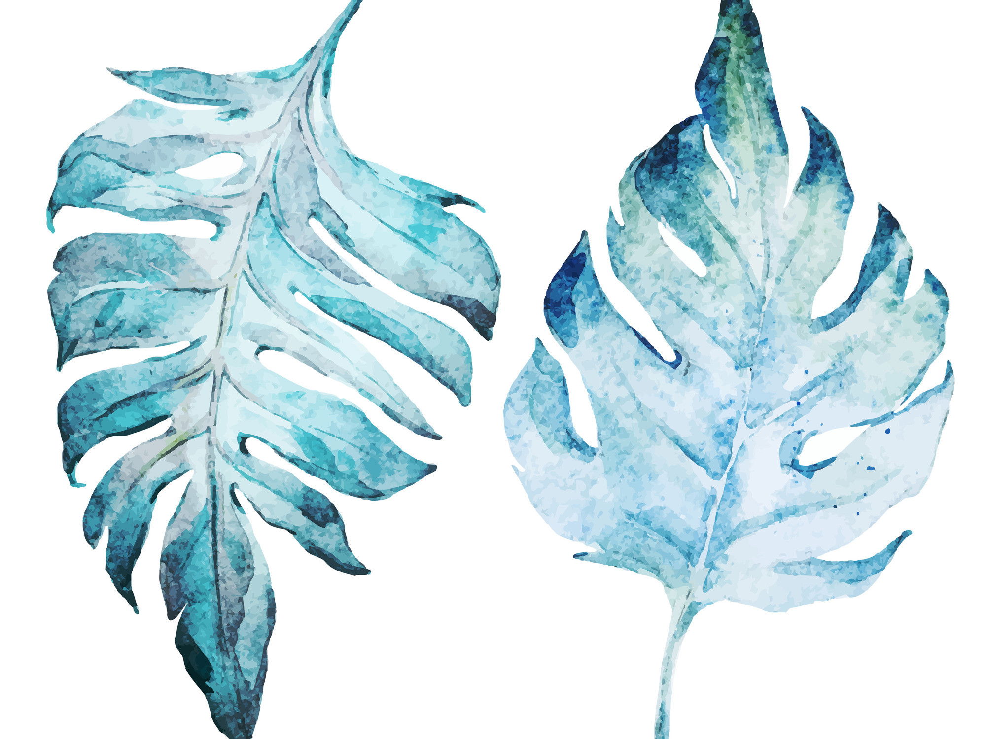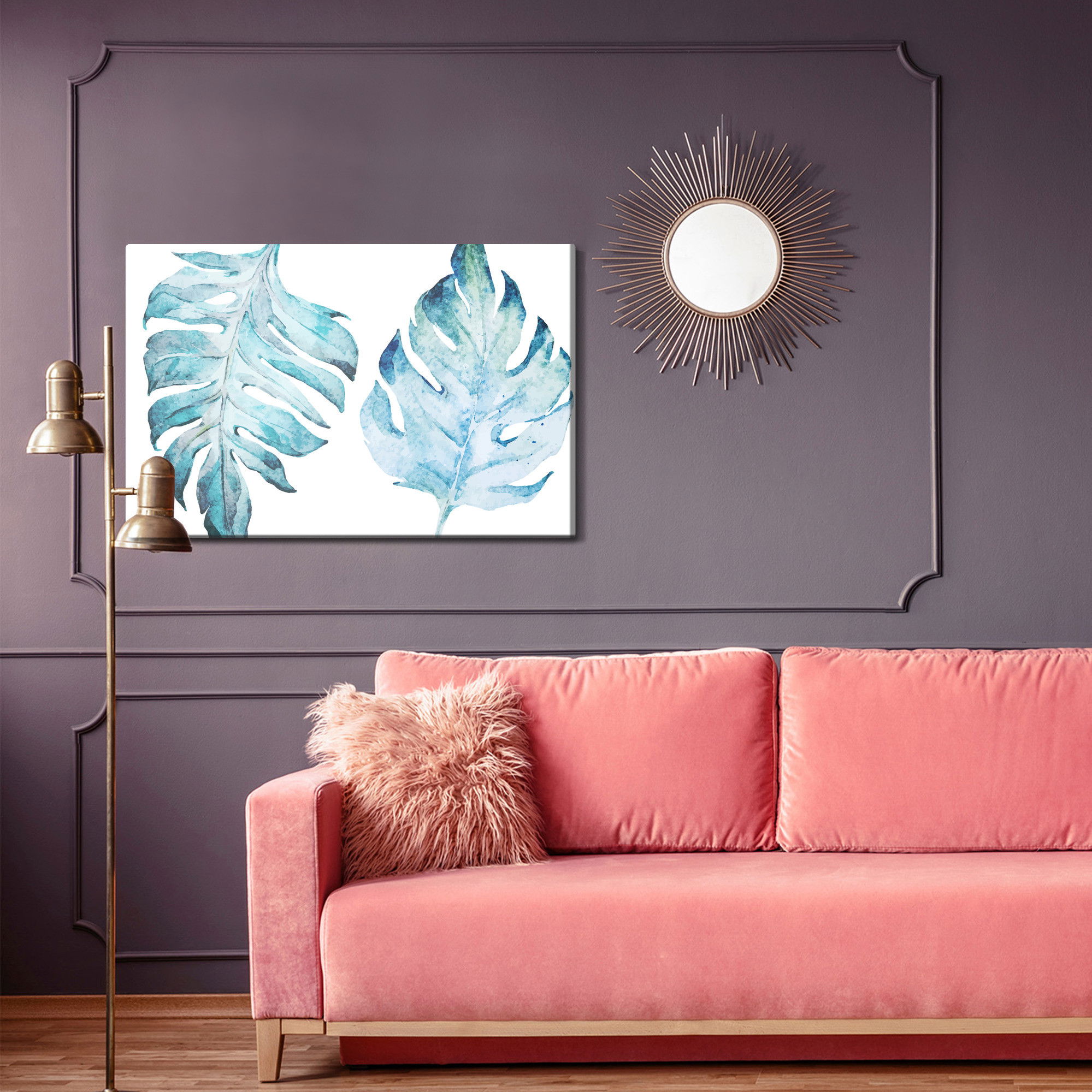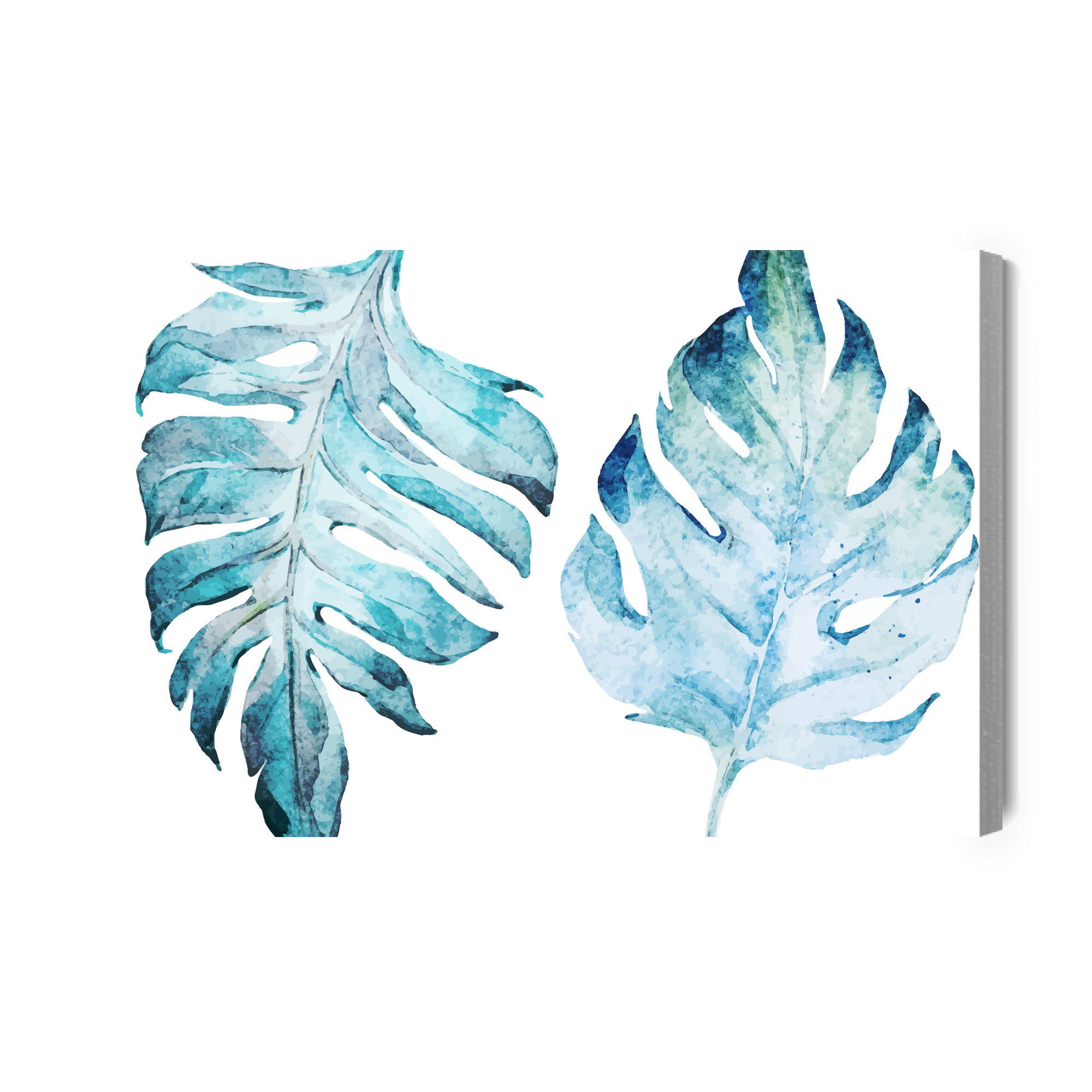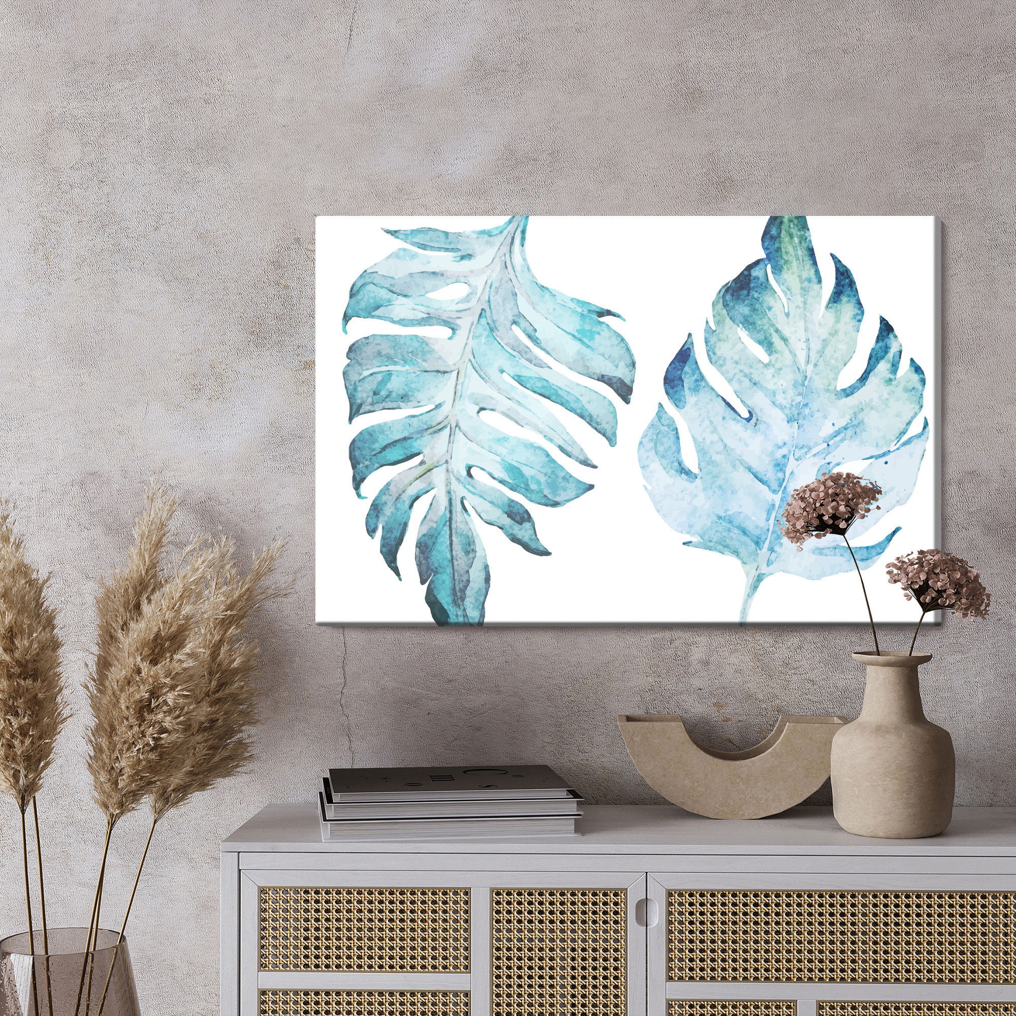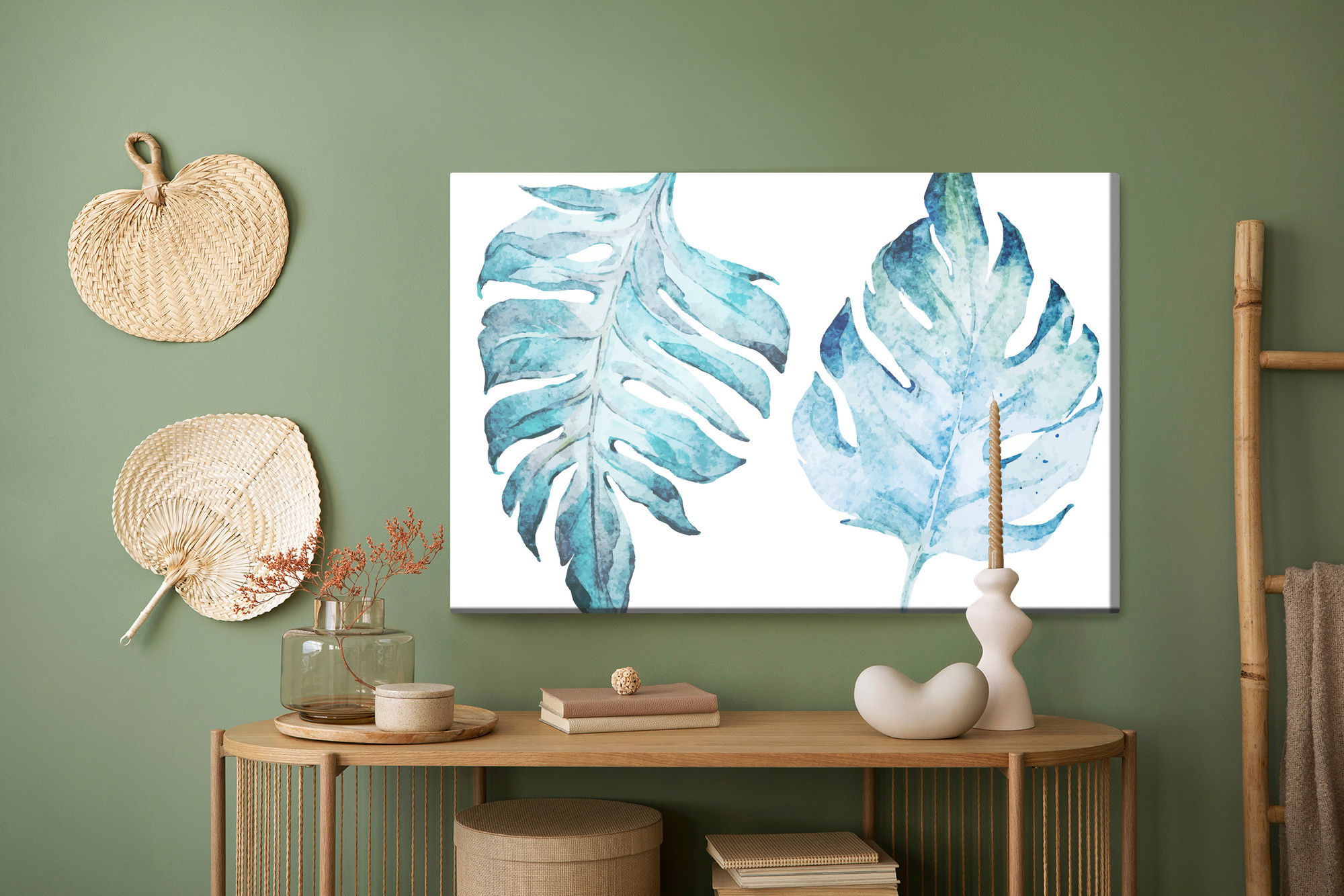 Ljuddämpande tavla – Blue monstera leaves painted för lugnare rum och mjukare akustik