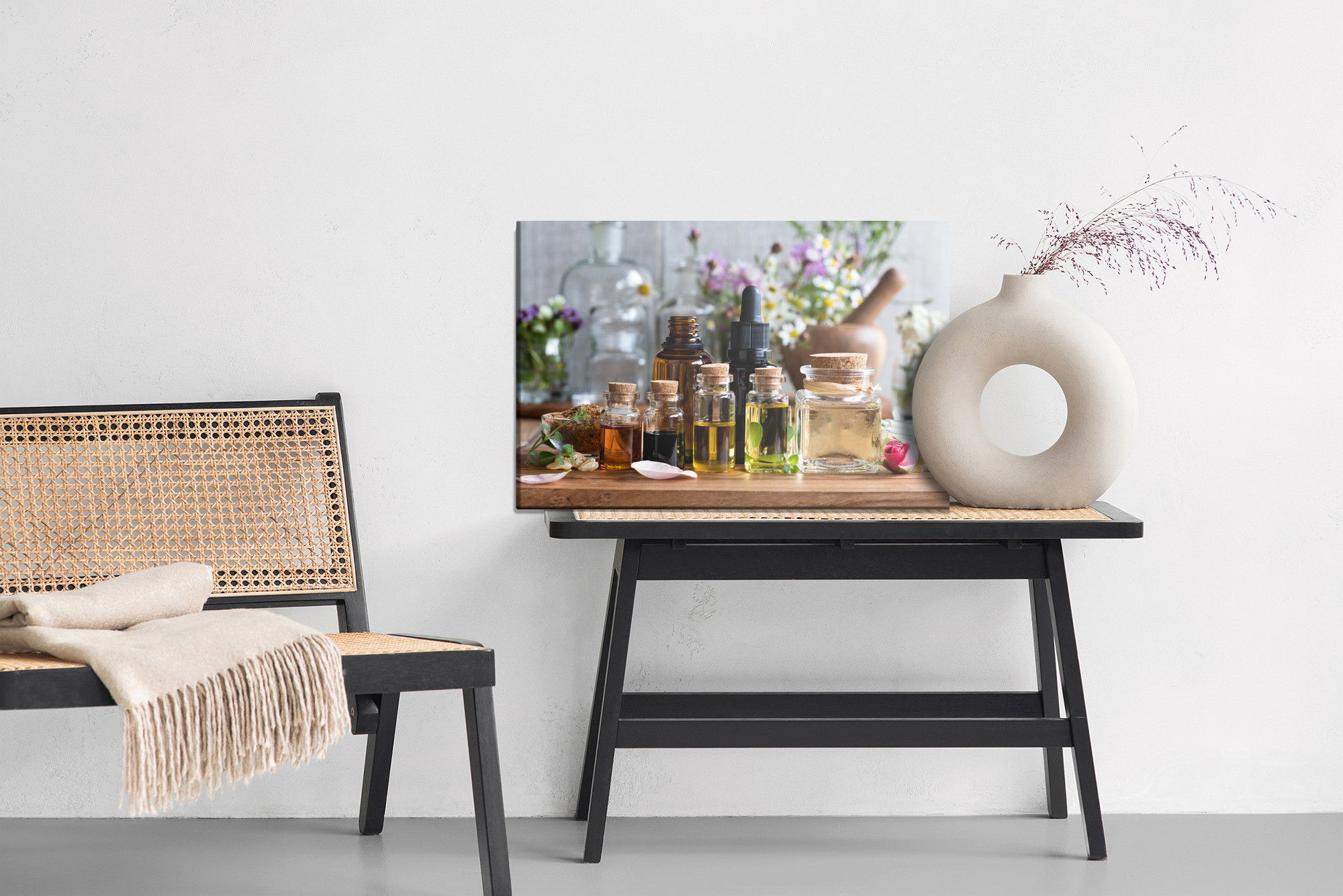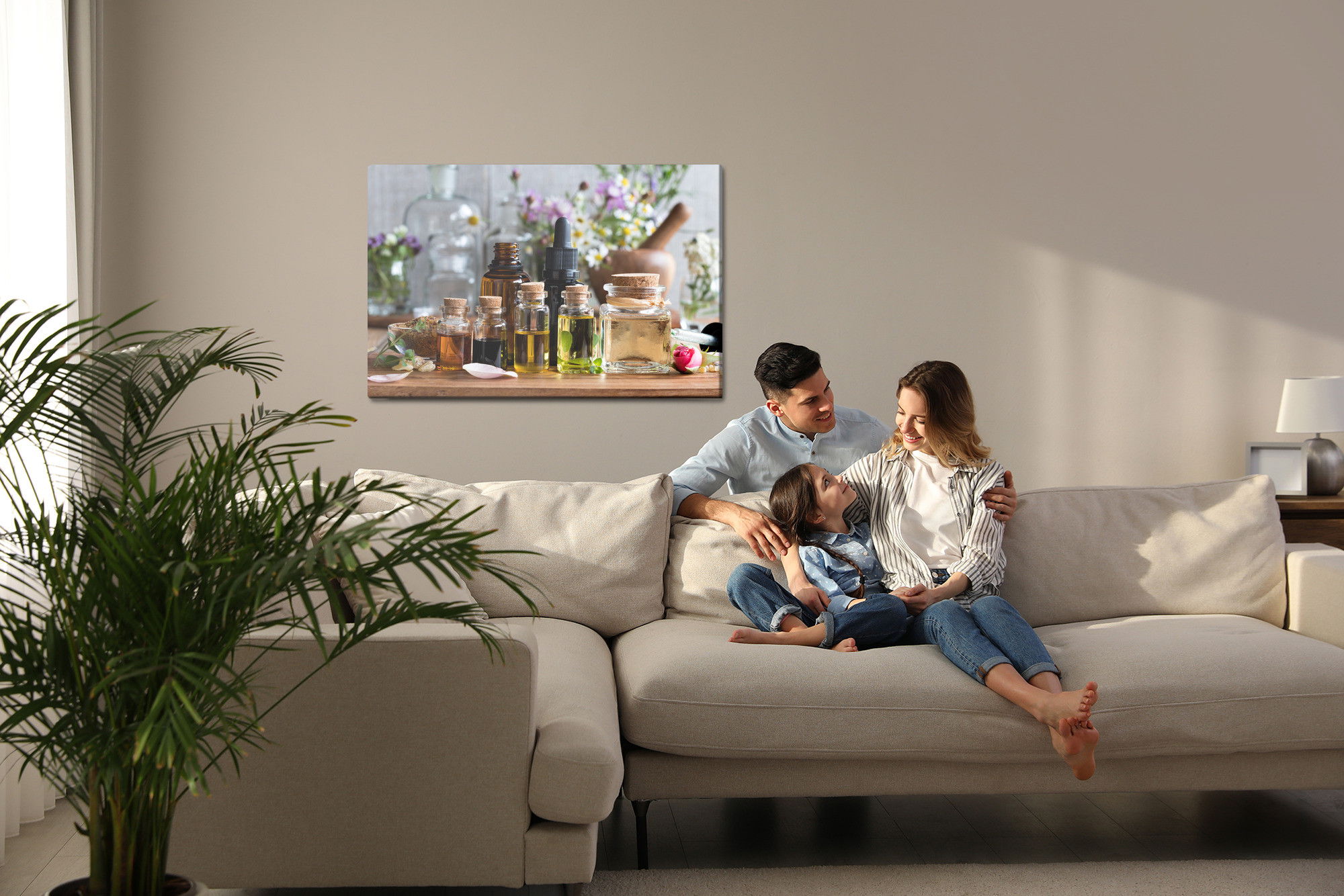 Motivet Colorful oils with spices återges med hög färgprecision och detaljrikedom tack vare HP Latex-teknologi. Trycket sker med vattenbaserade, luktfria och GREENGUARD Gold-certifierade bläck som ger en upplösning på upp till 300 DPI. Färgerna är UV-beständiga och behåller sin styrka även i ljusa rum, vilket gör tavlan lämplig för både hem- och offentliga miljöer.