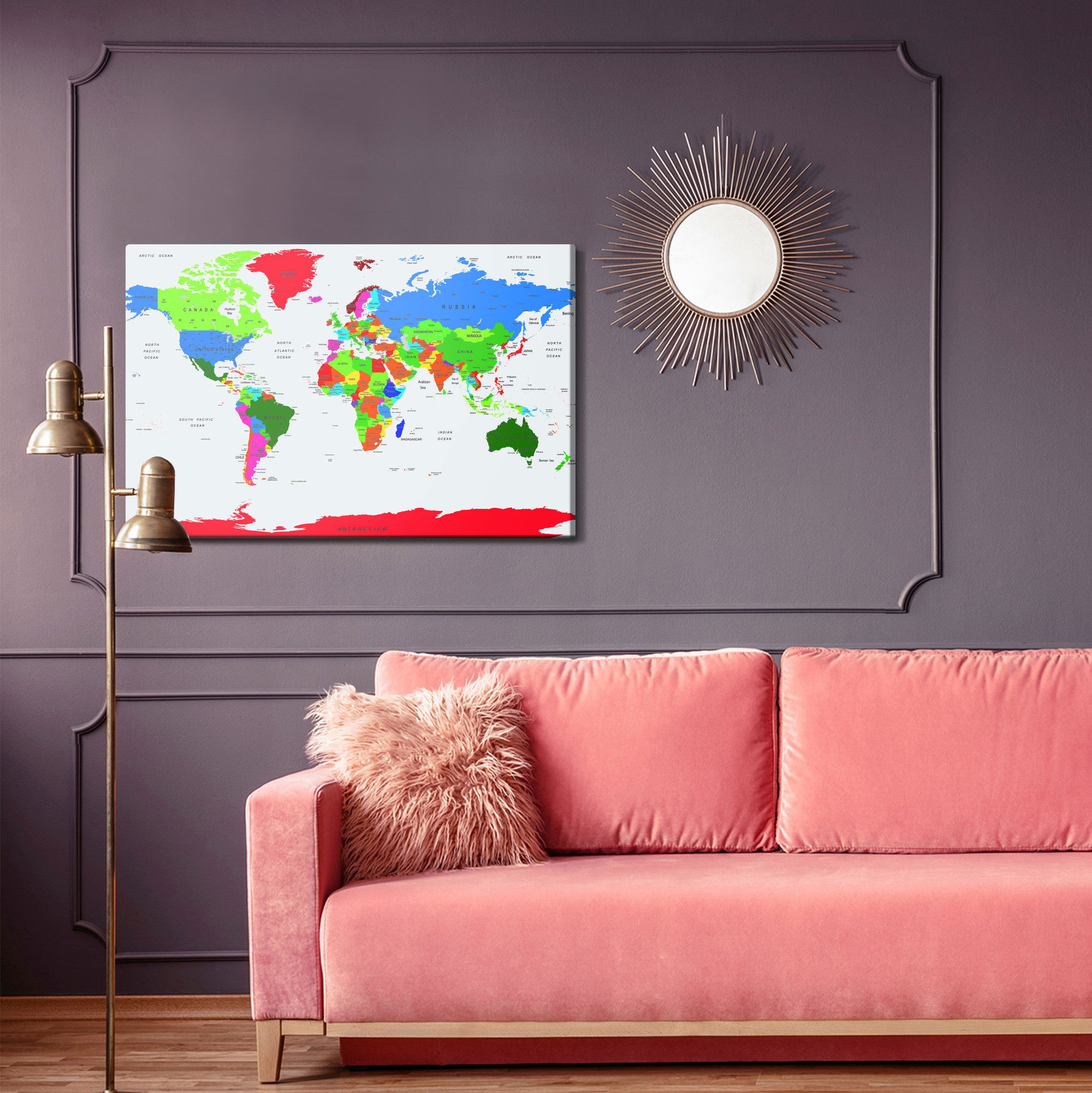 Ljuddämpande tavla - Colorful world political map