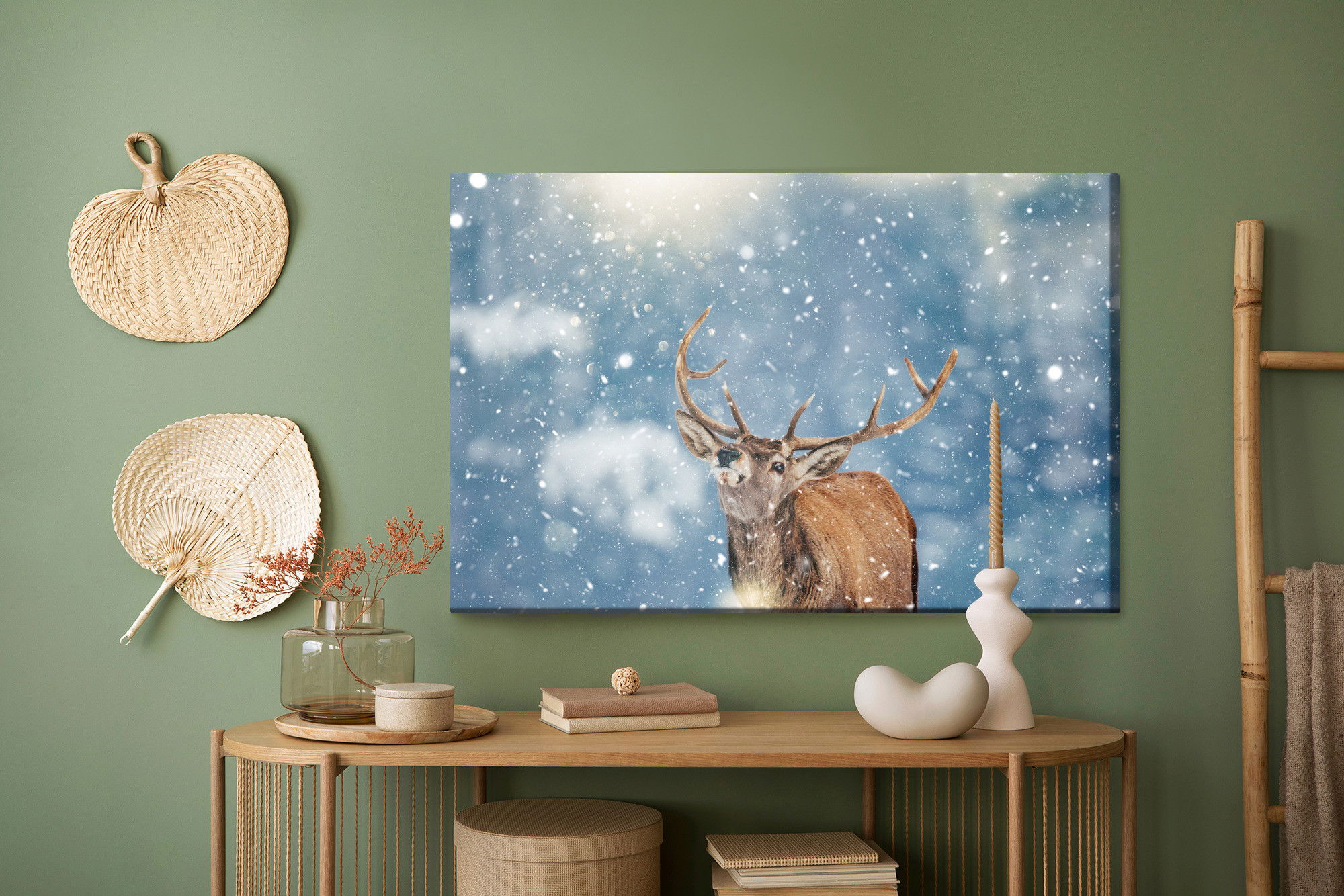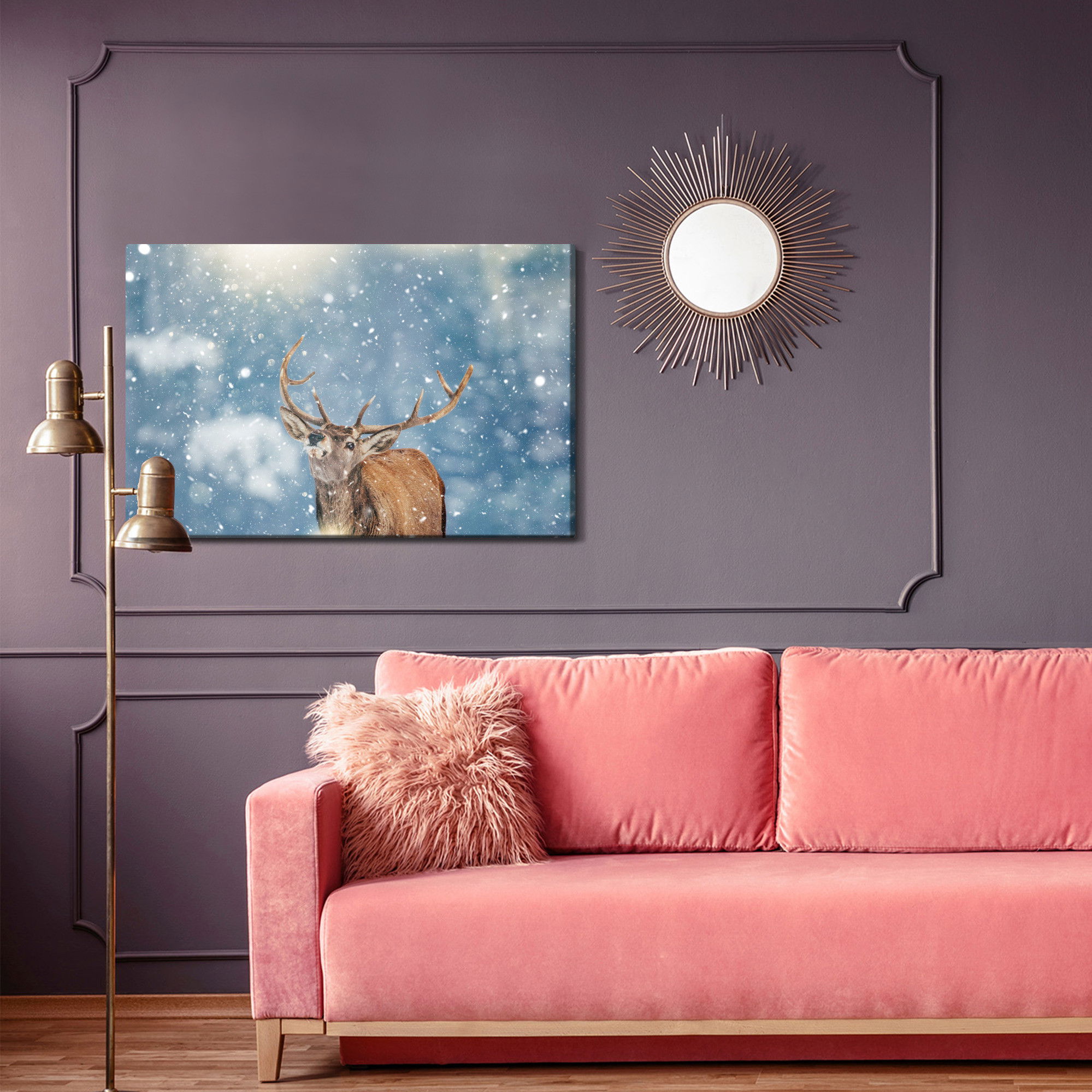 Ljuddämpande tavla – Deer and snowflakes för lugnare rum och mjukare akustik