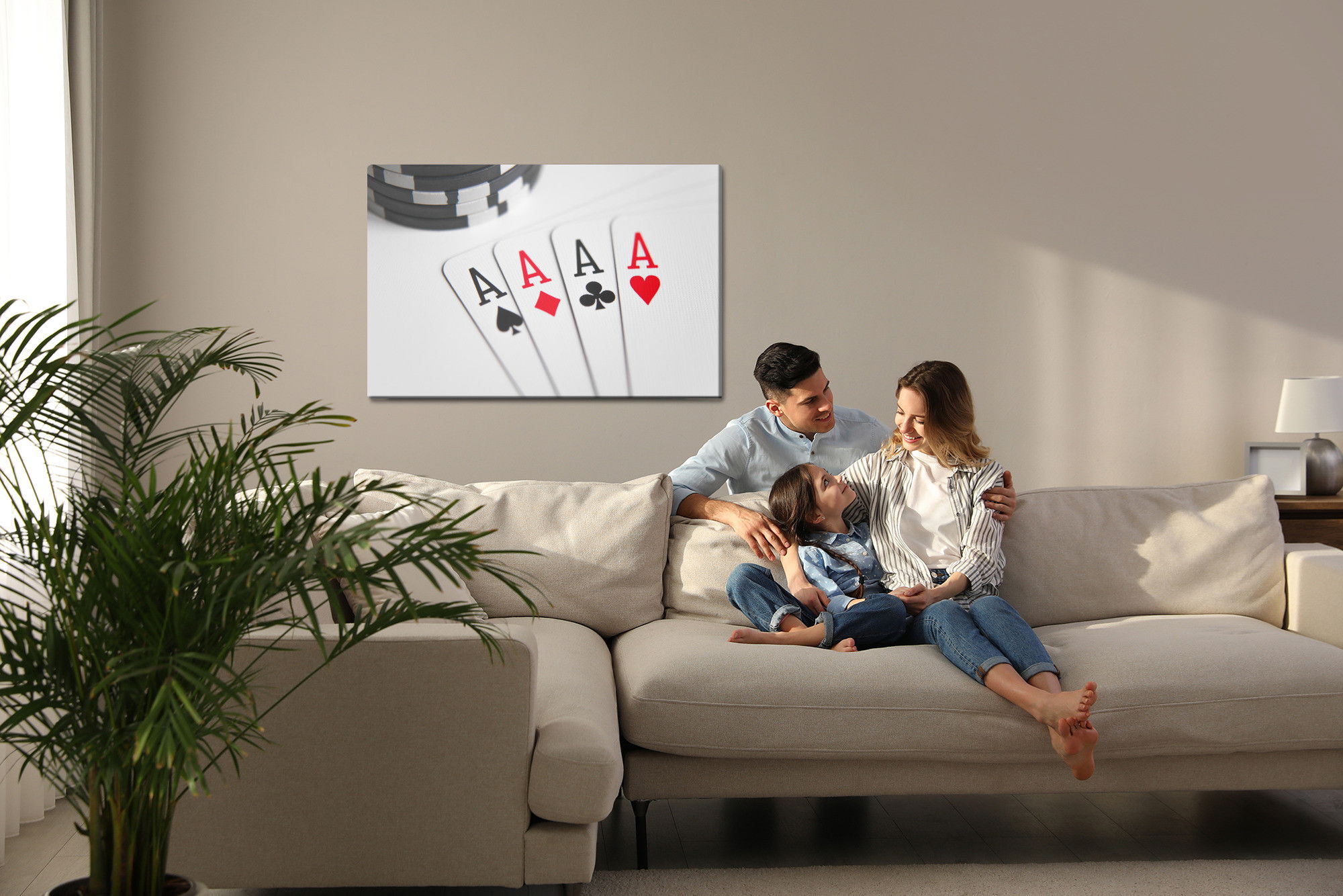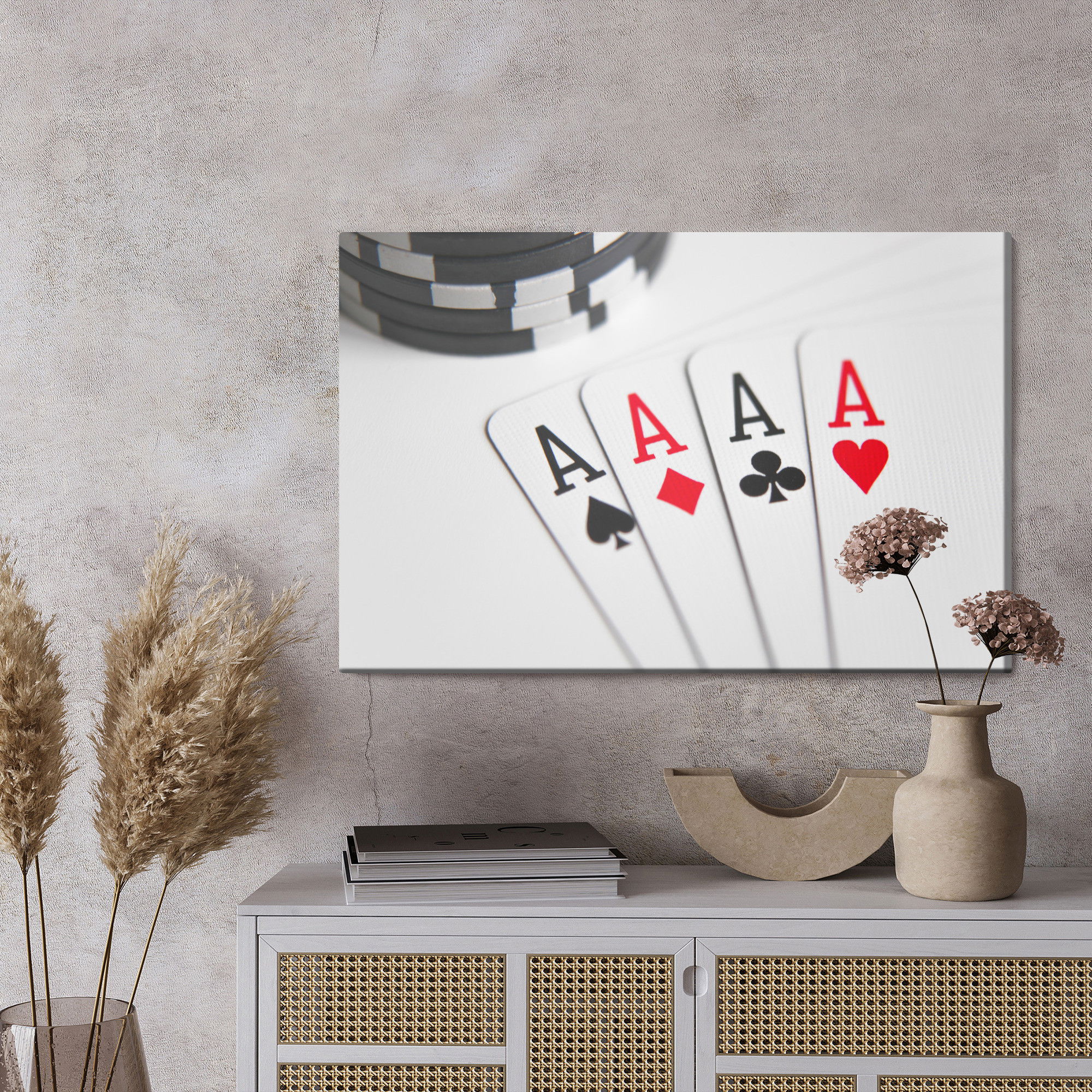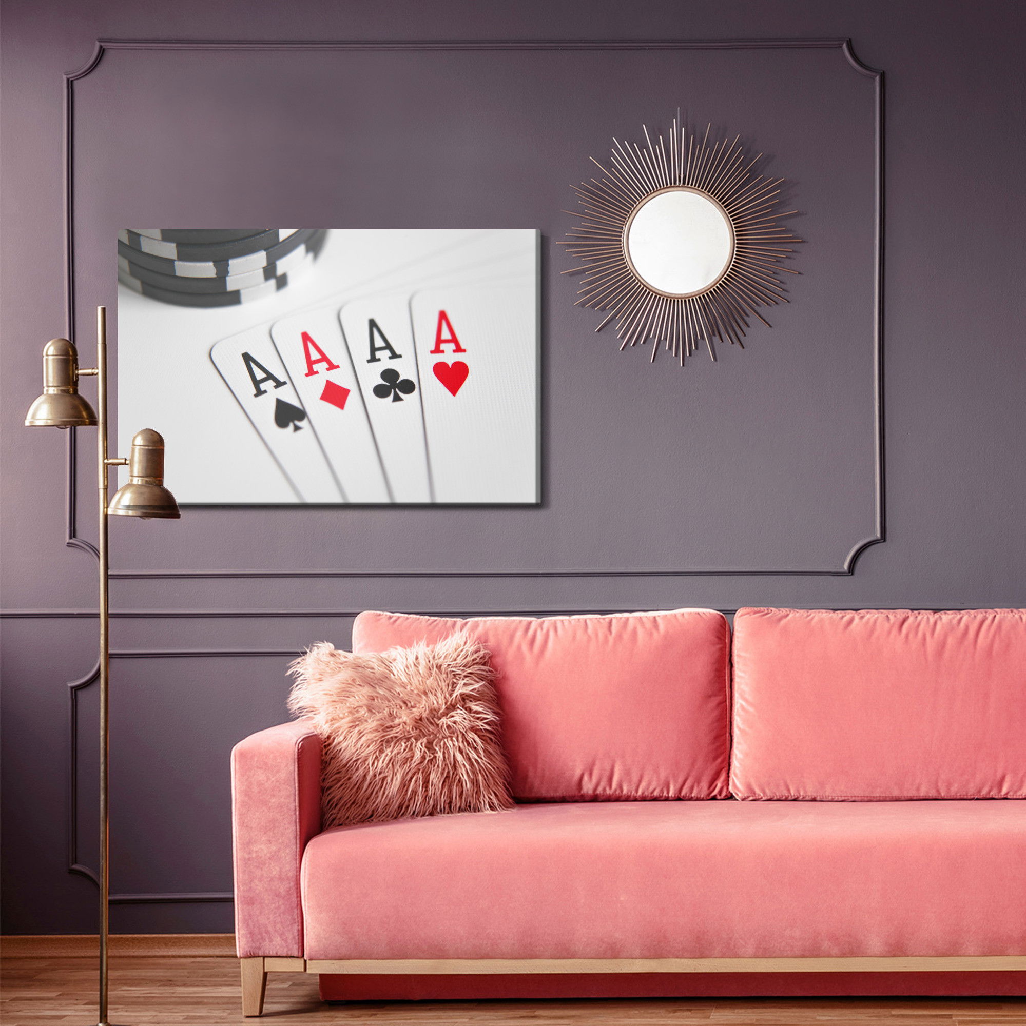 Ljuddämpande tavla – Four aces to play poker för lugnare rum och mjukare akustik