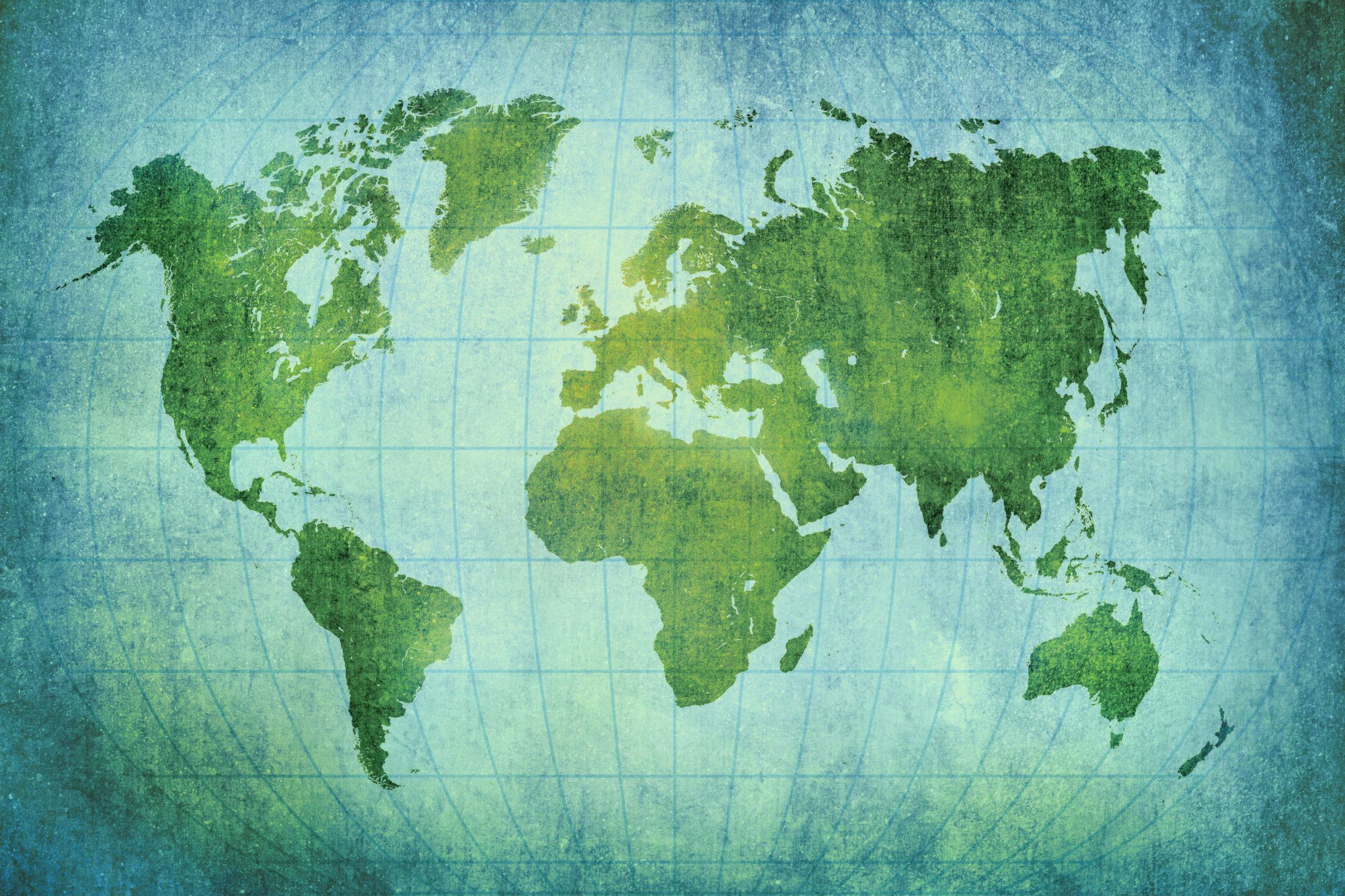 Ljuddämpande tavla – Green-blue world map för lugnare rum och mjukare akustik