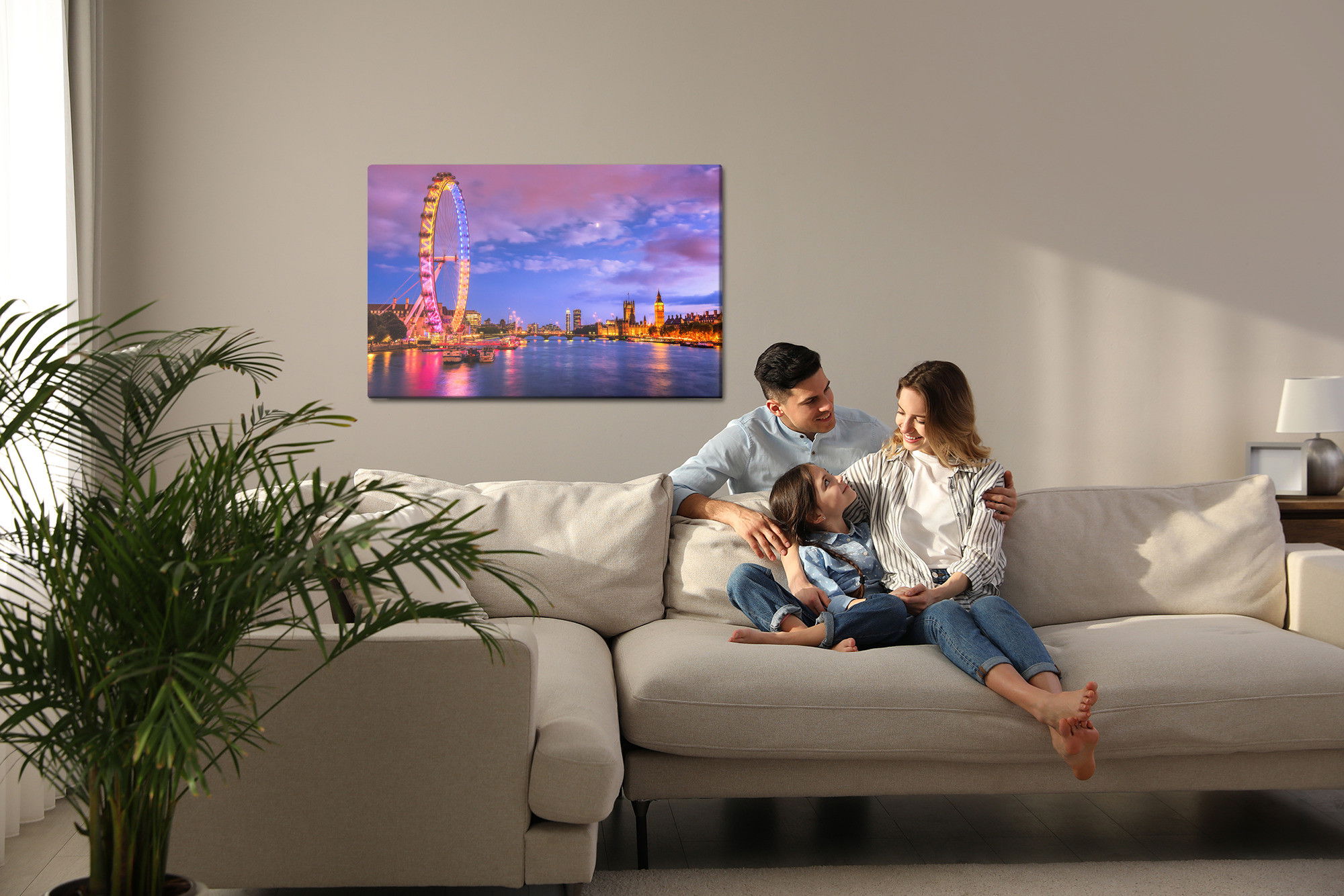 Ljuddämpande tavla – London eye at evening time för lugnare rum och mjukare akustik