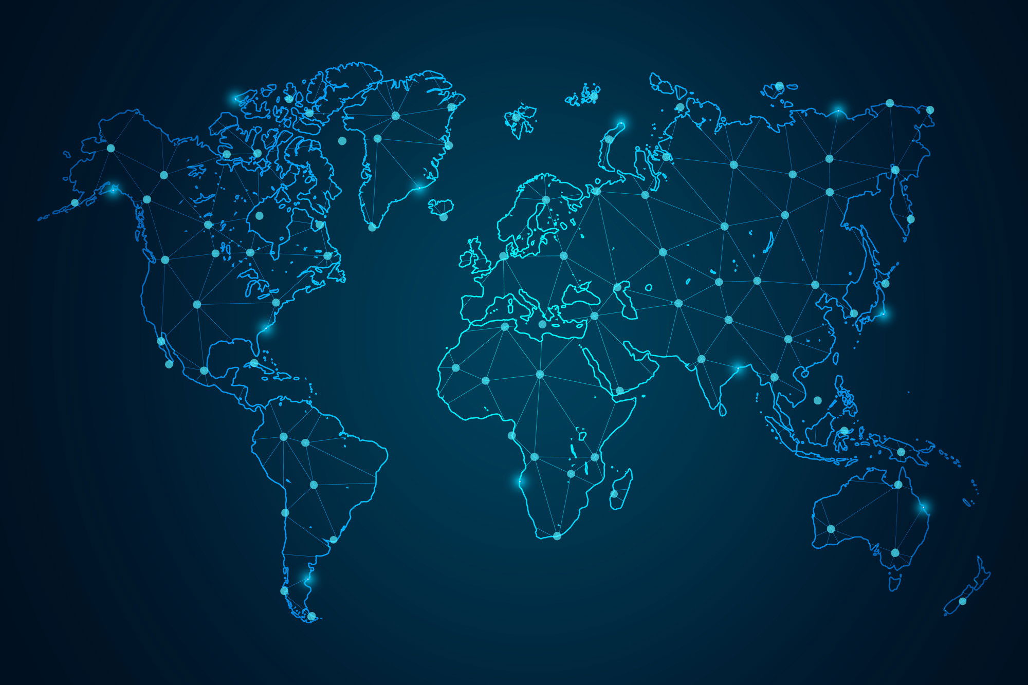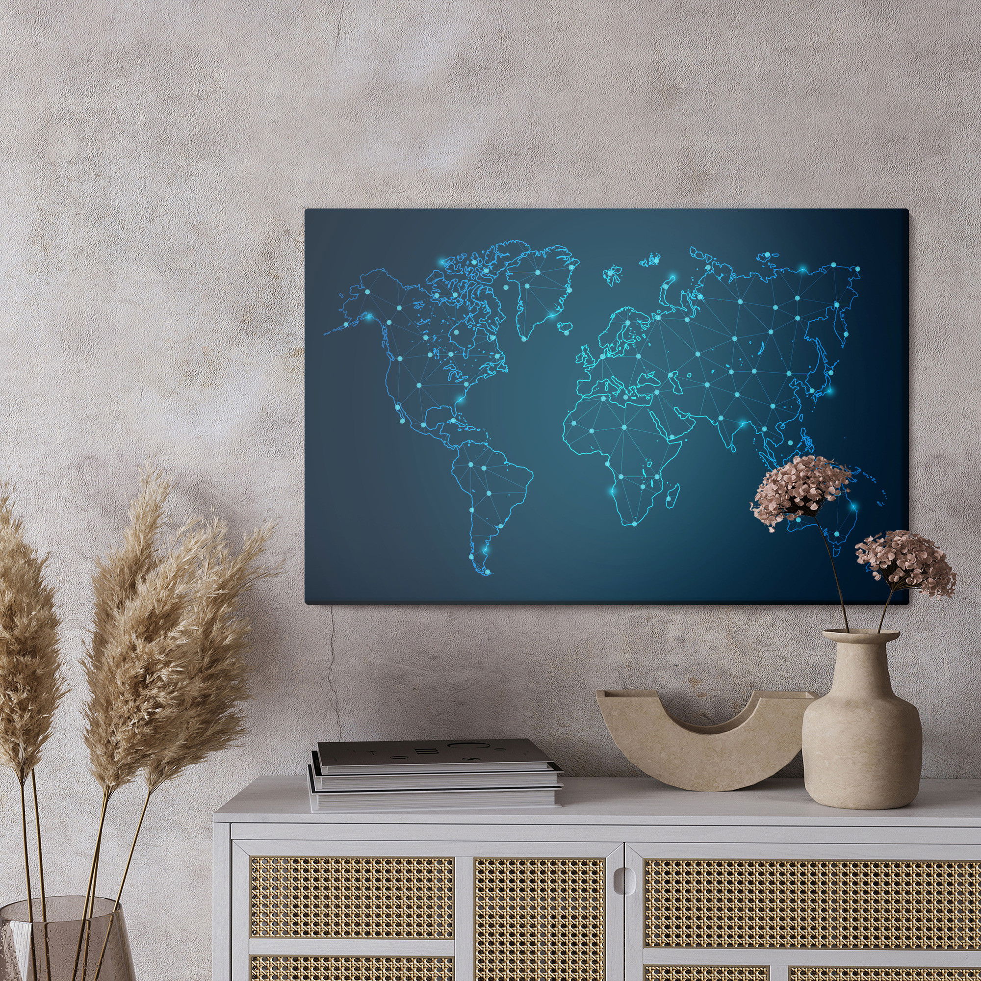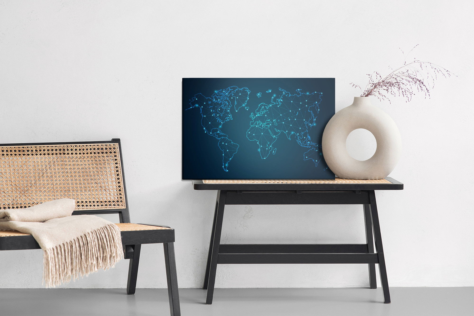 Ljuddämpande tavla – Modernist blue world map för lugnare rum och mjukare akustik