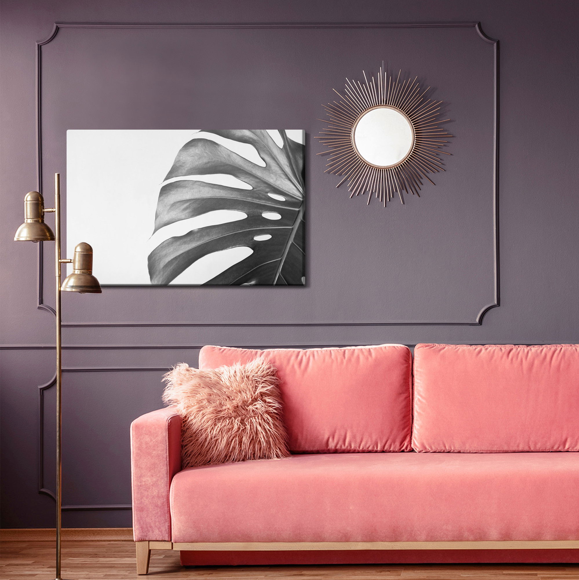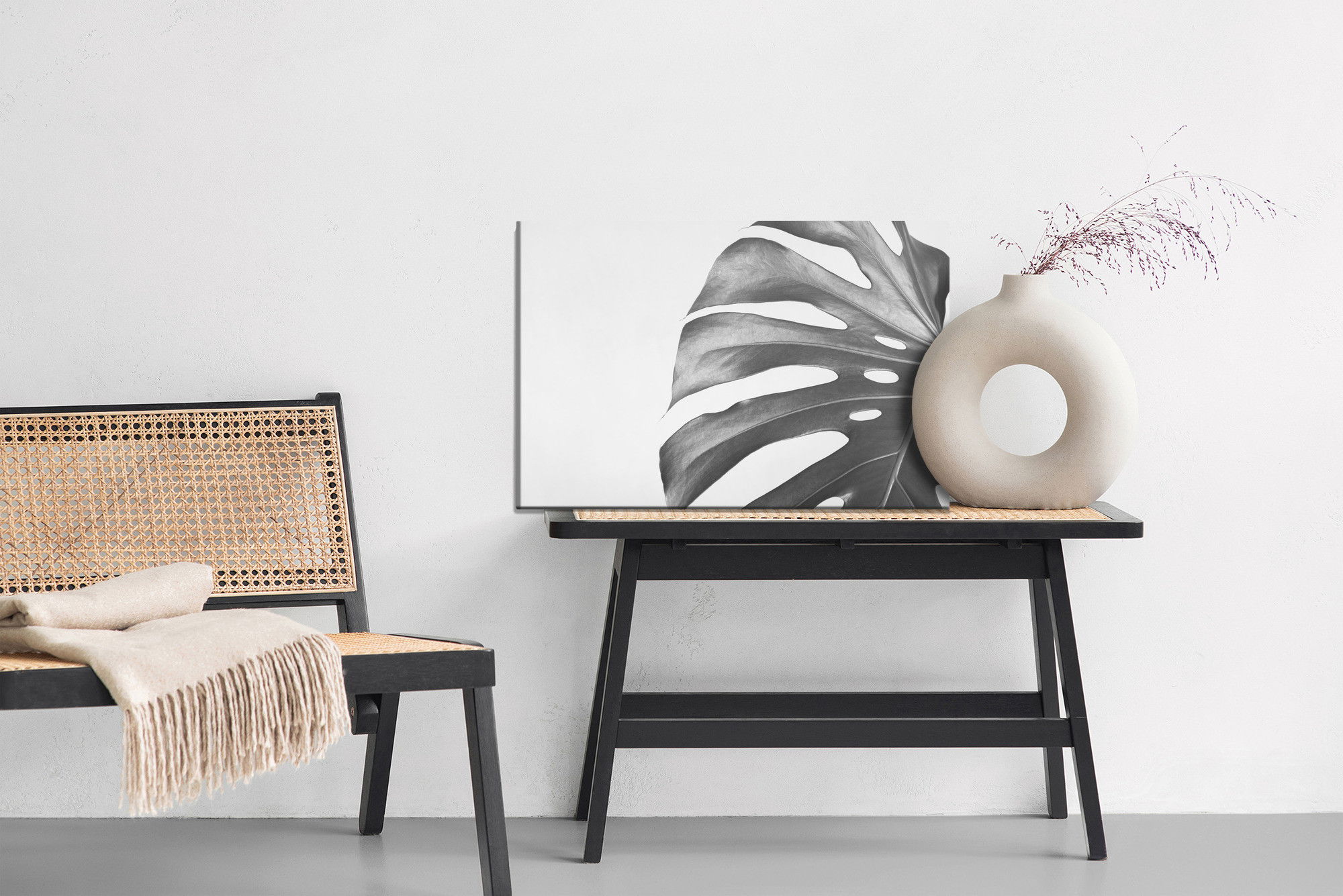 Ljuddämpande tavla – Monstera leaf in black för lugnare rum och mjukare akustik