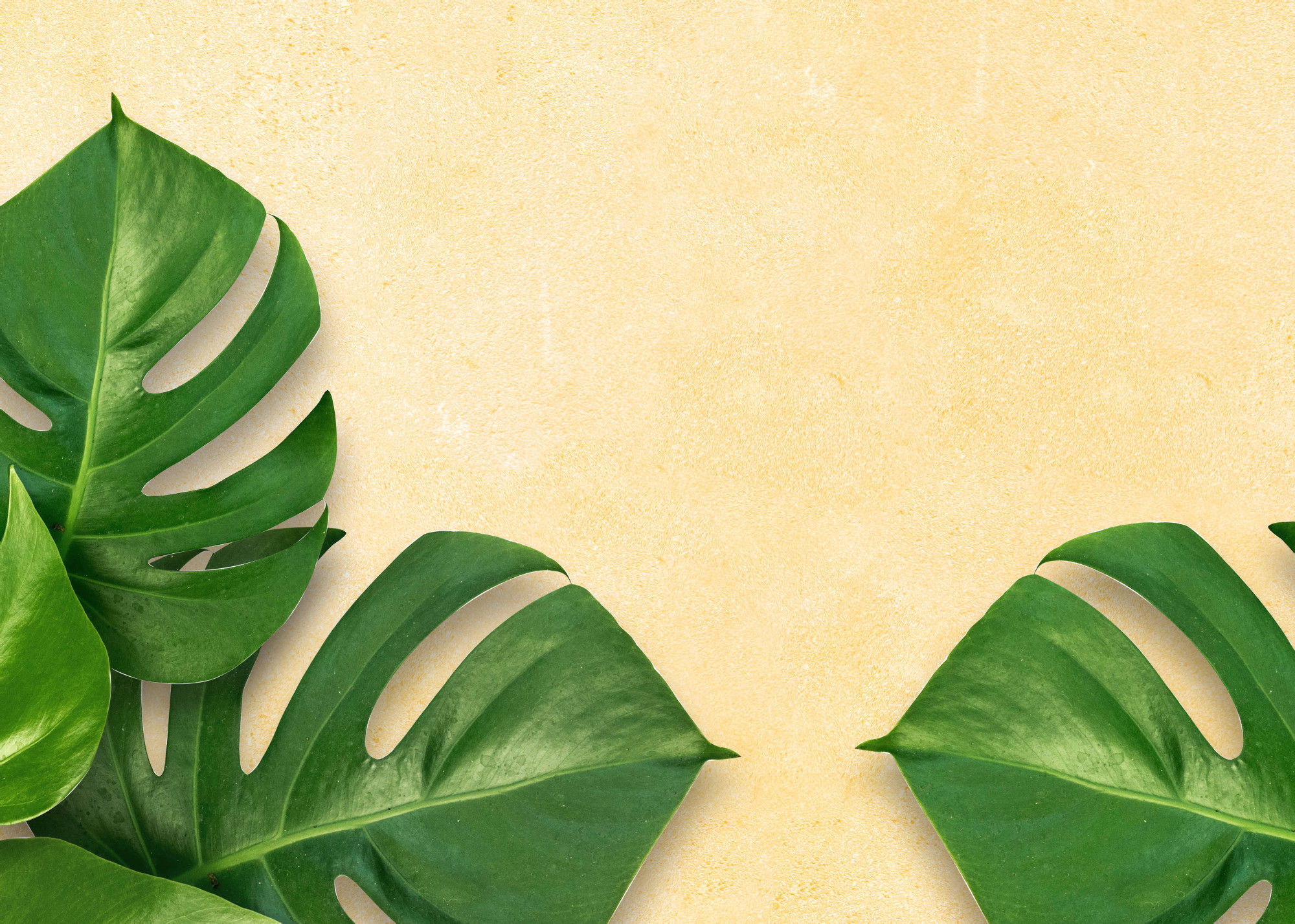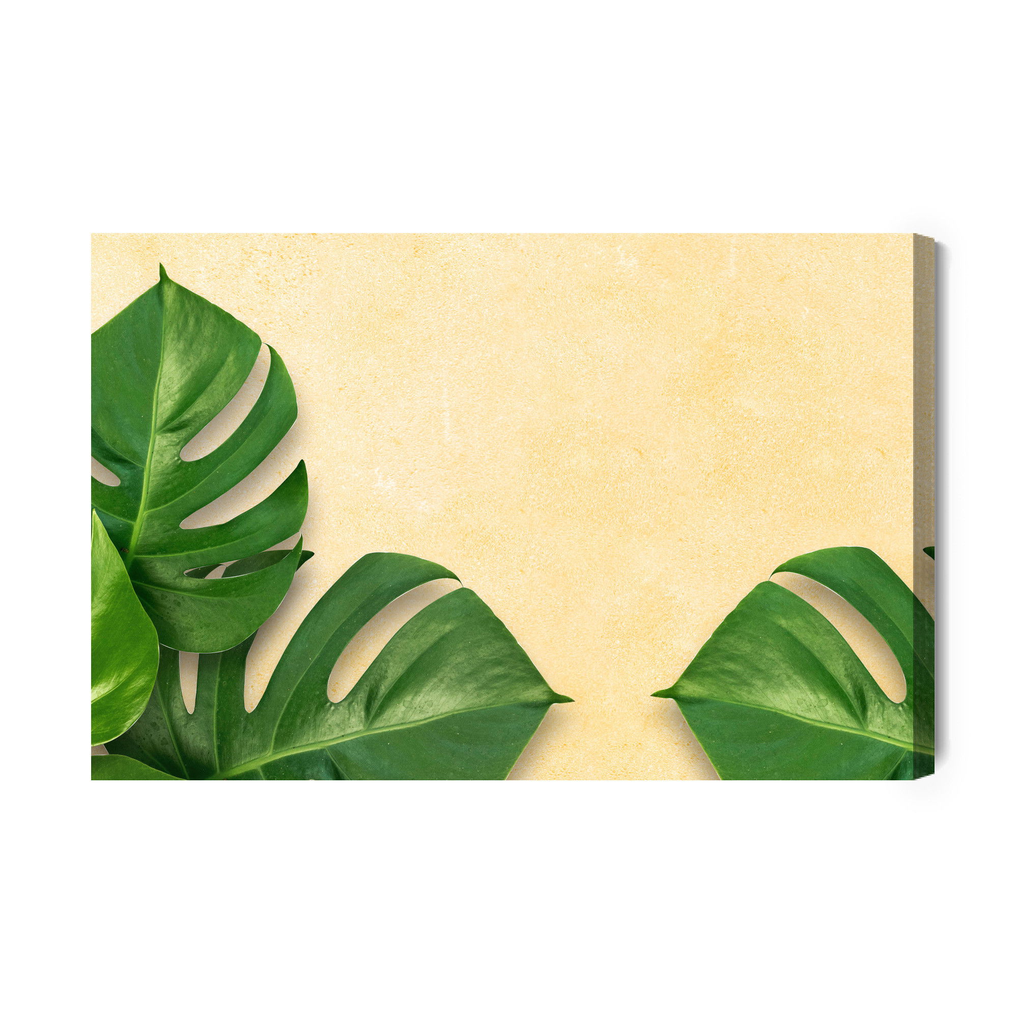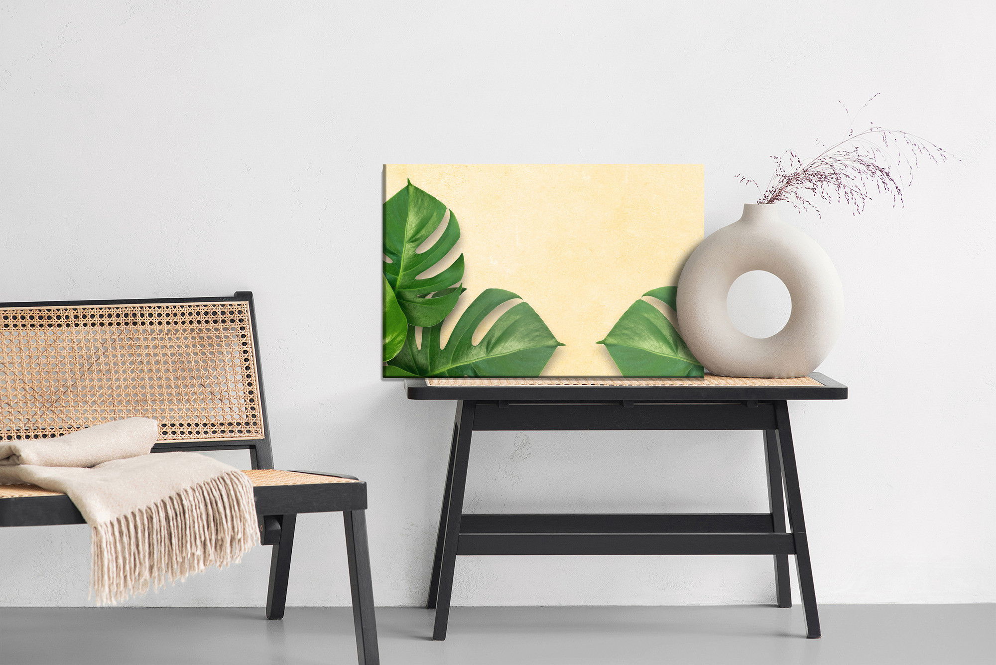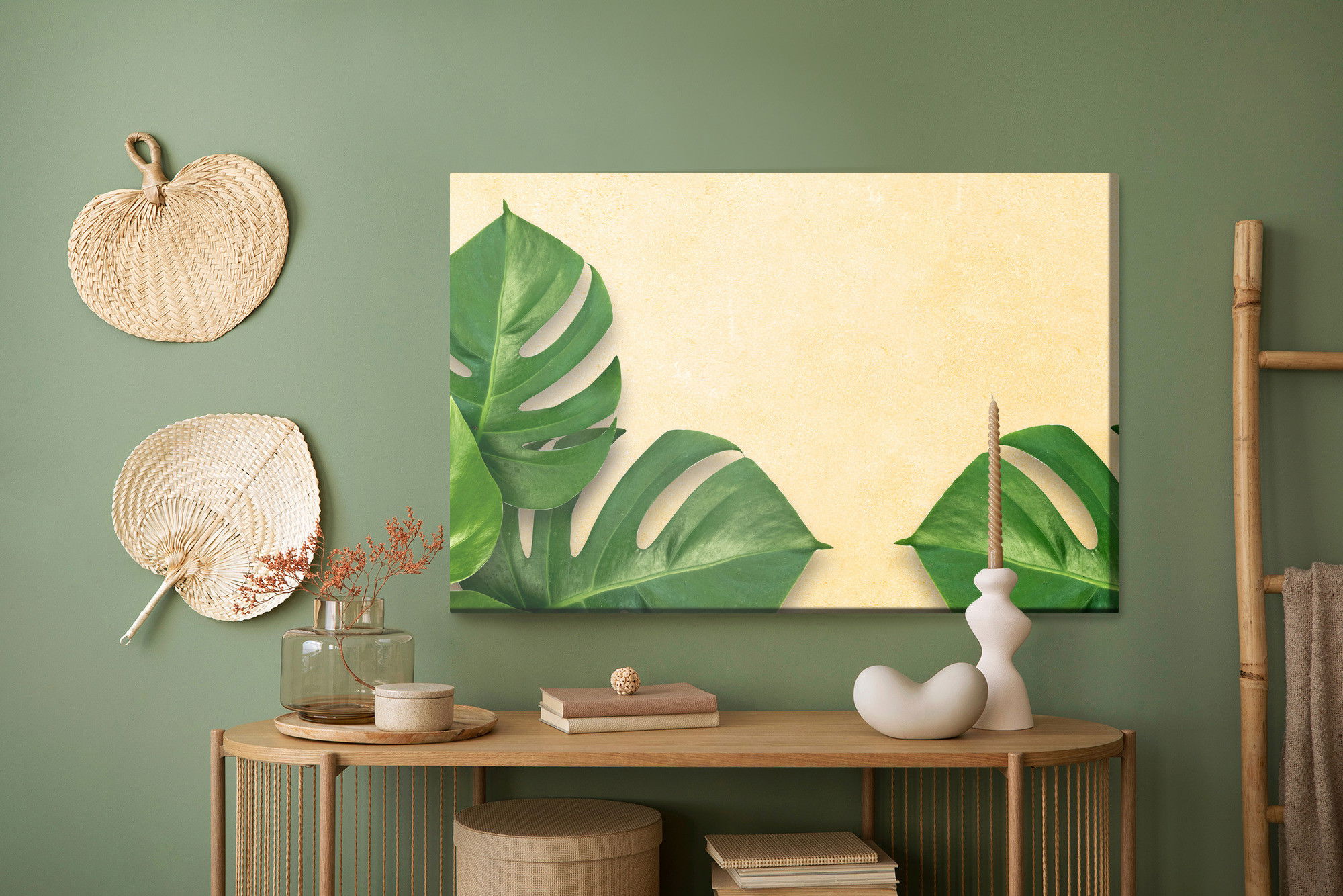 Ljuddämpande tavla – Monstera leaves on a beige för lugnare rum och mjukare akustik