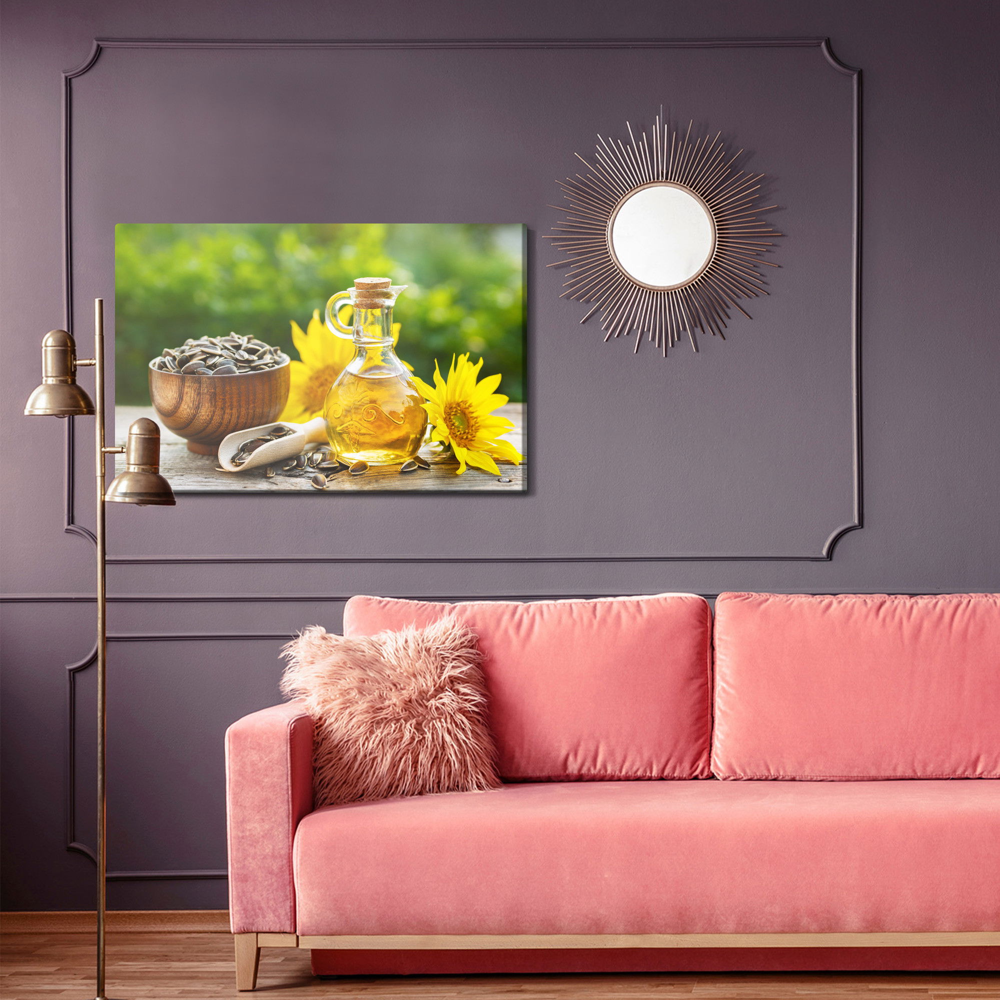 Med en ljuddämpande tavla Natural sunflower oil från SilentDirect får du en kombination av genomarbetad bildkvalitet och akustiklösning. Tavlan byggs på en canvastavla med fururam där insidan fylls med en kärna av återvunnen polyester som reducerar efterklang.