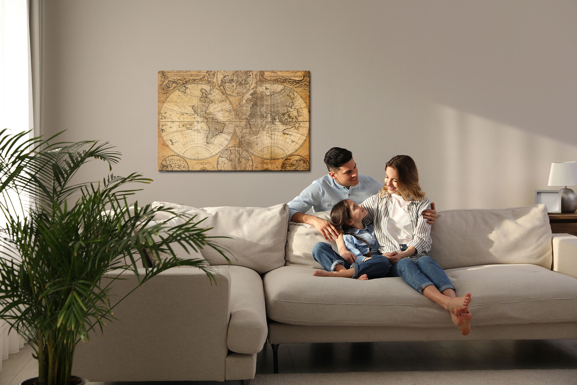 Motivet Old world map from 18th återges med hög färgprecision och detaljrikedom tack vare HP Latex-teknologi. Trycket sker med vattenbaserade, luktfria och GREENGUARD Gold-certifierade bläck som ger en upplösning på upp till 300 DPI. Färgerna är UV-beständiga och behåller sin styrka även i ljusa rum, vilket gör tavlan lämplig för både hem- och offentliga miljöer.