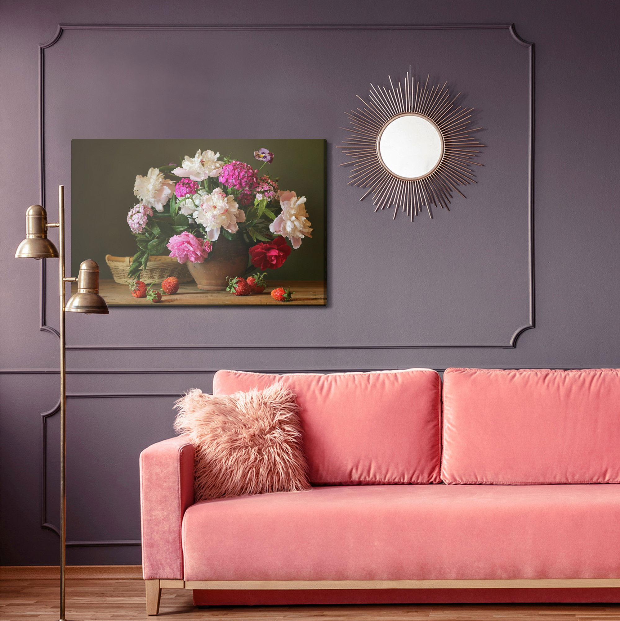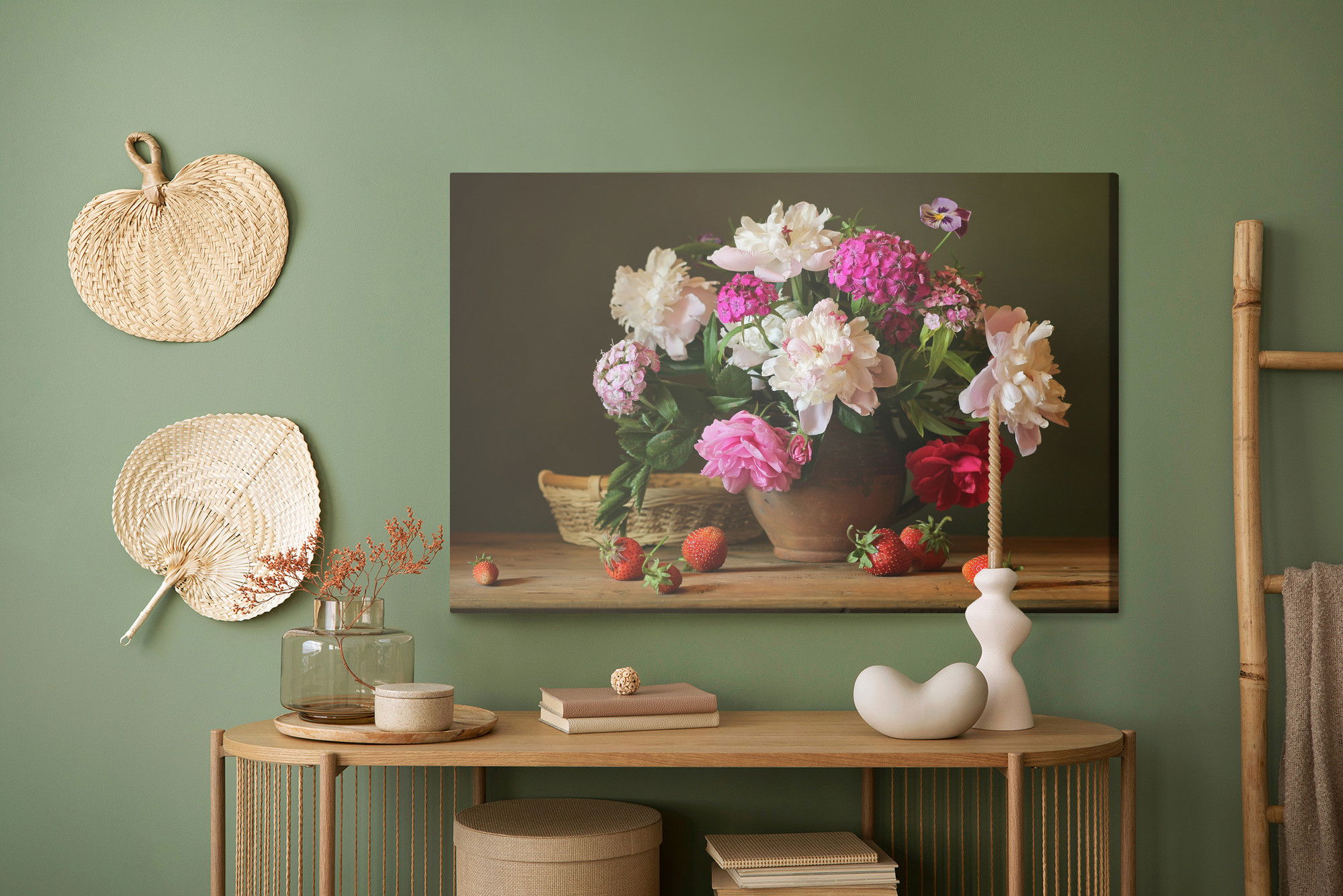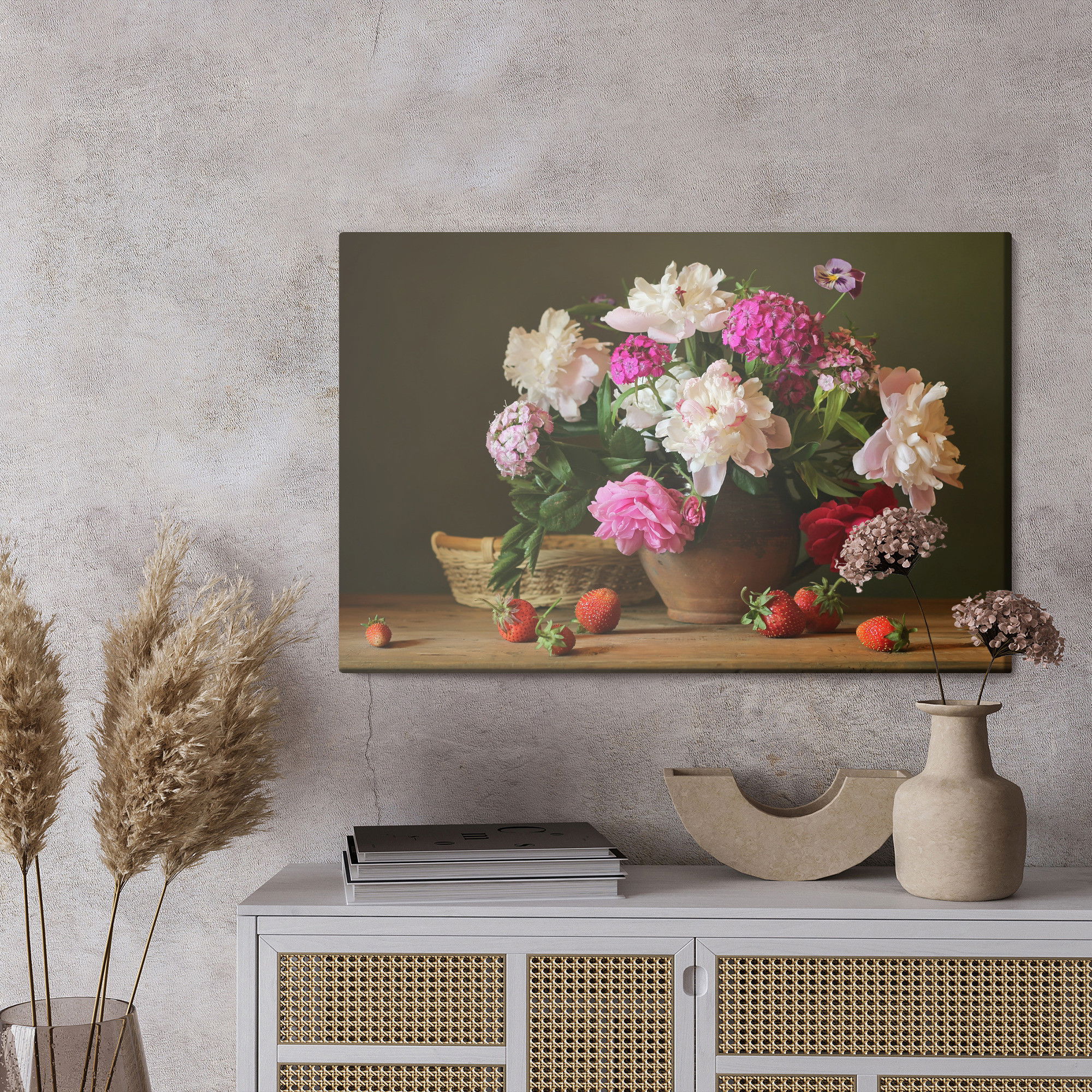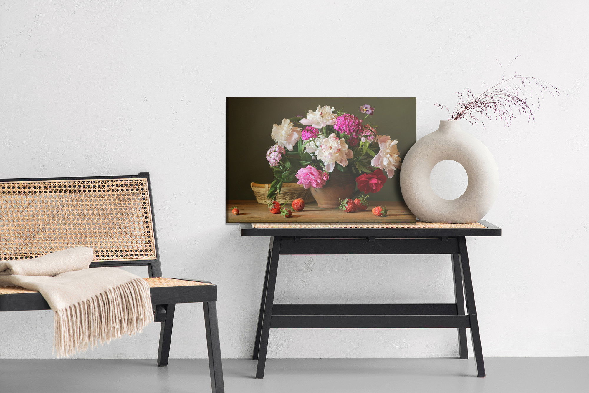 Ljuddämpande tavla – Peonies with strawberries för lugnare rum och mjukare akustik