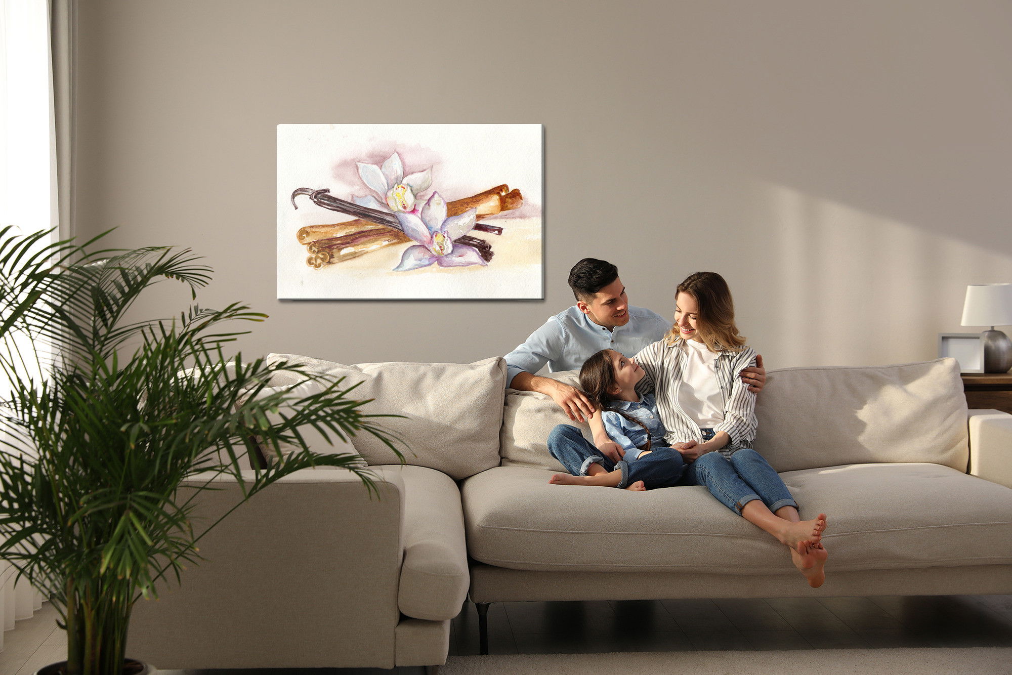 Motivet Vanilla sticks with flowers återges med hög färgprecision och detaljrikedom tack vare HP Latex-teknologi. Trycket sker med vattenbaserade, luktfria och GREENGUARD Gold-certifierade bläck som ger en upplösning på upp till 300 DPI. Färgerna är UV-beständiga och behåller sin styrka även i ljusa rum, vilket gör tavlan lämplig för både hem- och offentliga miljöer.