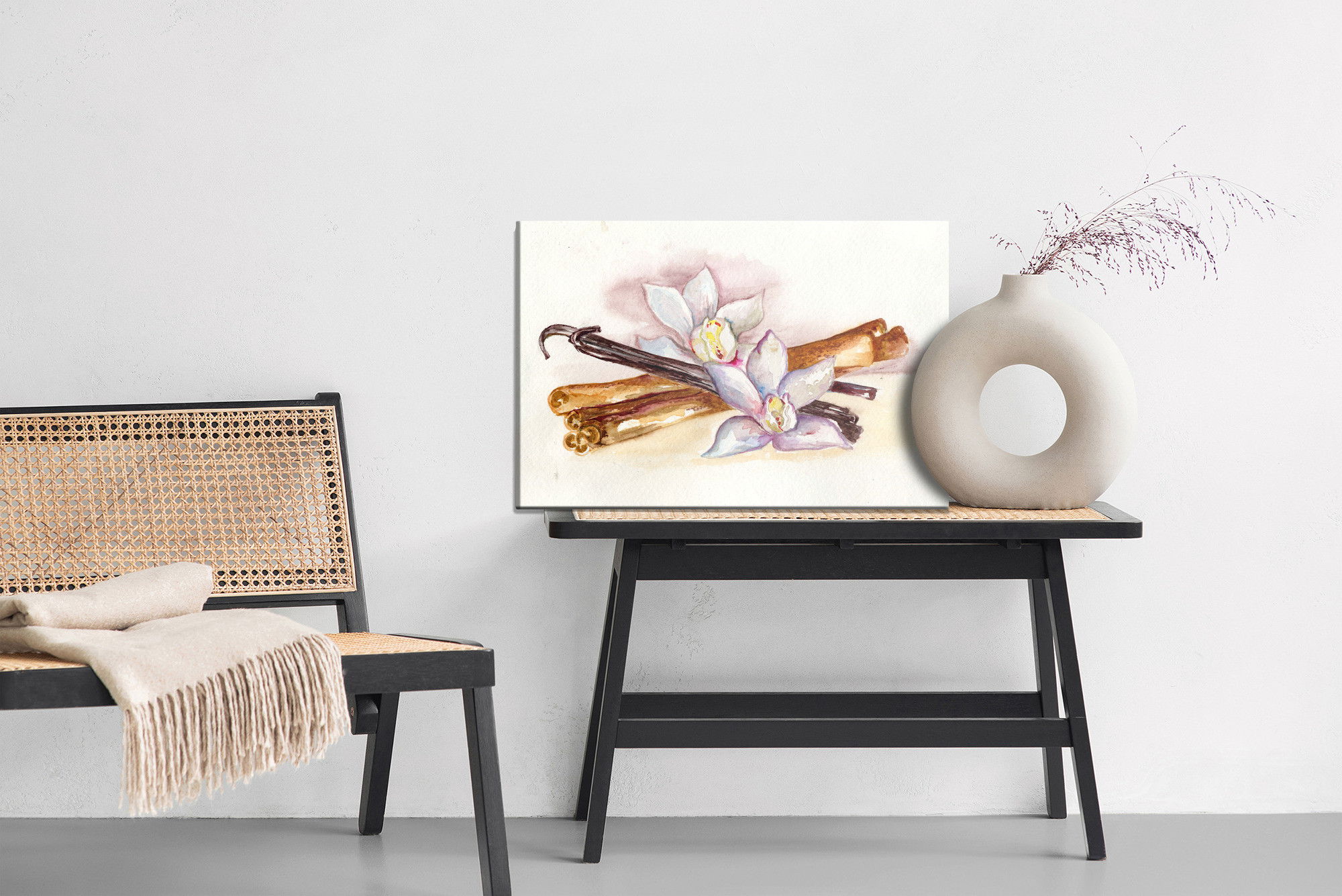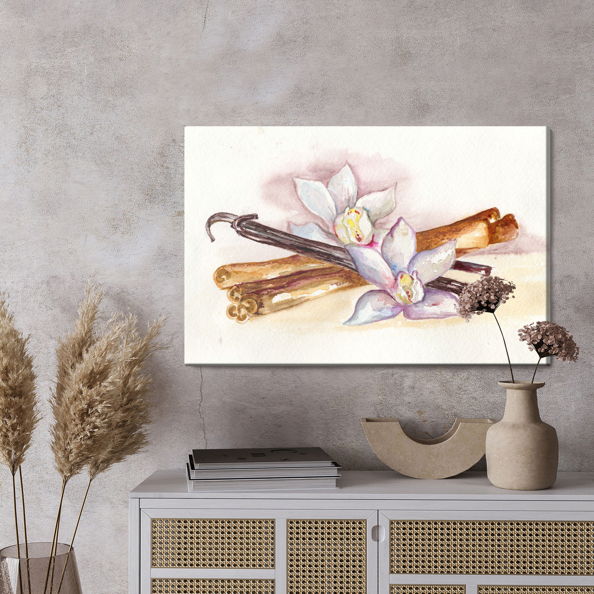 Ljuddämpande tavla – Vanilla sticks with flowers för lugnare rum och mjukare akustik