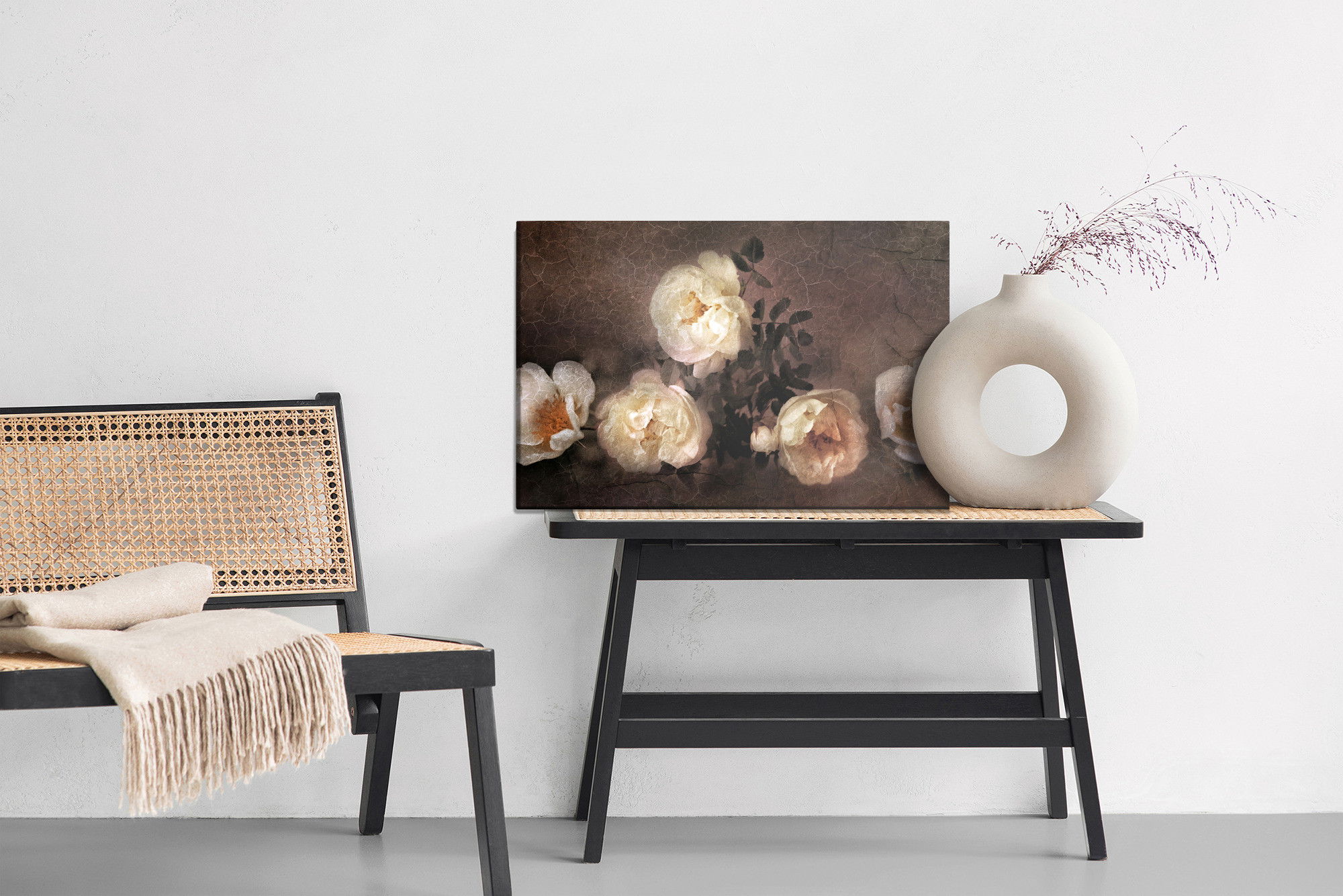Ljuddämpande tavla – Vintage wild roses för lugnare rum och mjukare akustik