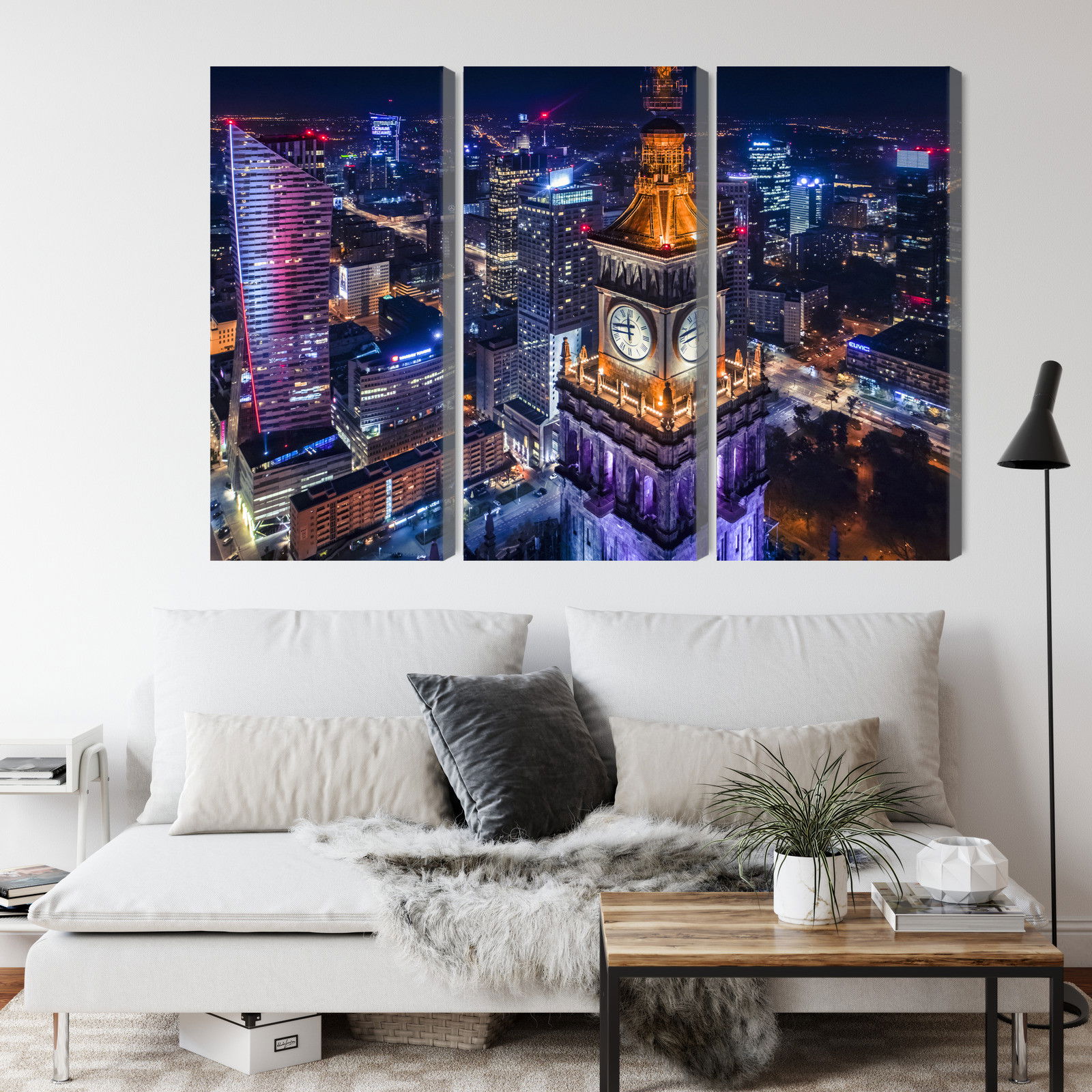 Med SilentDirects ljuddämpande tavla Warsaw panorama at night får du både ett stilrent motiv och en akustisk lösning i samma produkt. Tavlan byggs i Sverige och utgår från en canvastavla med fururam som fylls med en återvunnen polyestercell för effektiv ljudabsorption.