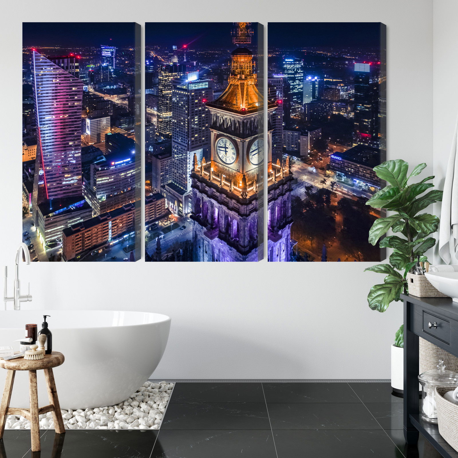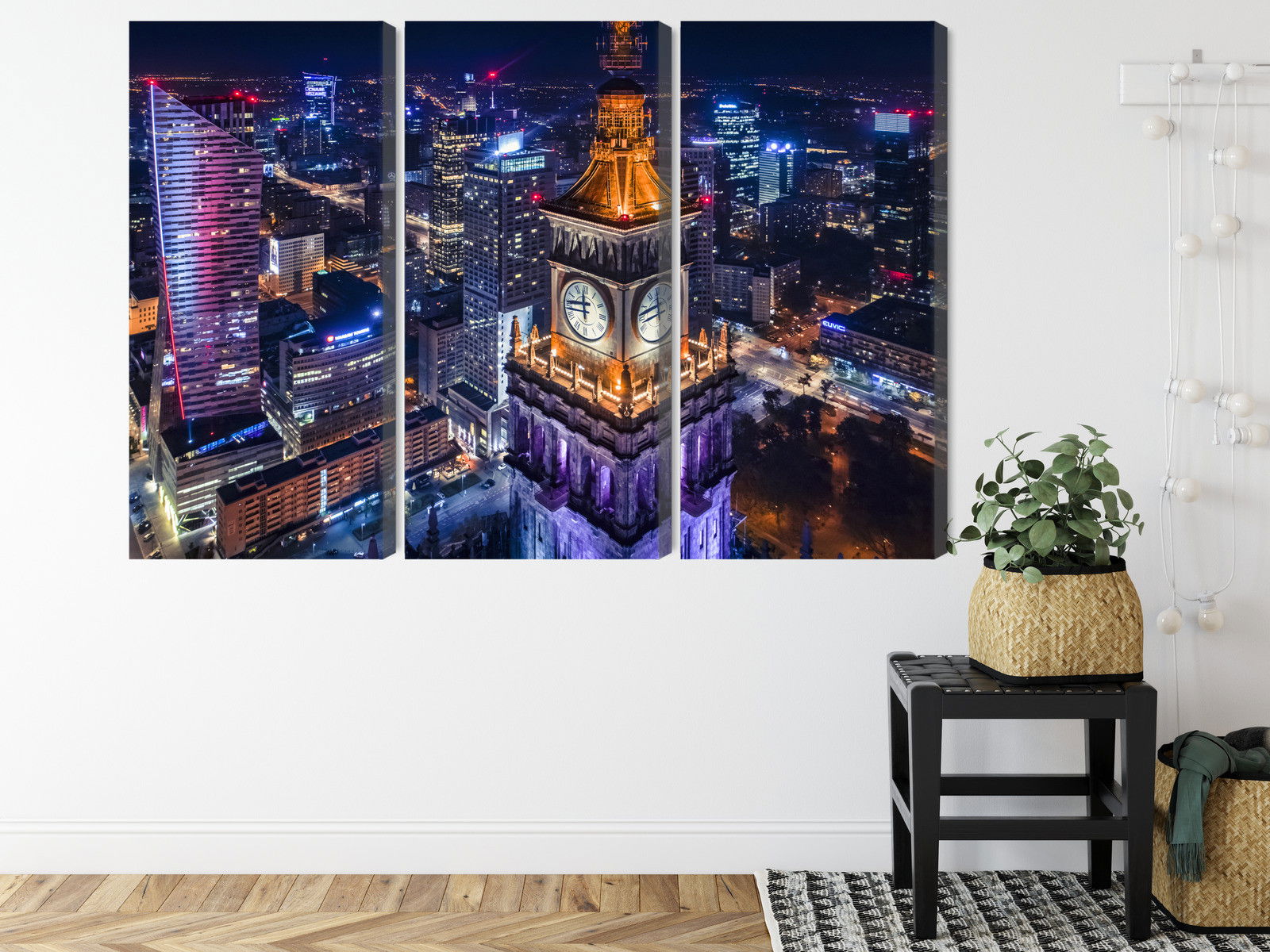 Ljuddämpande tavla – Warsaw panorama at night för lugnare rum och mjukare akustik