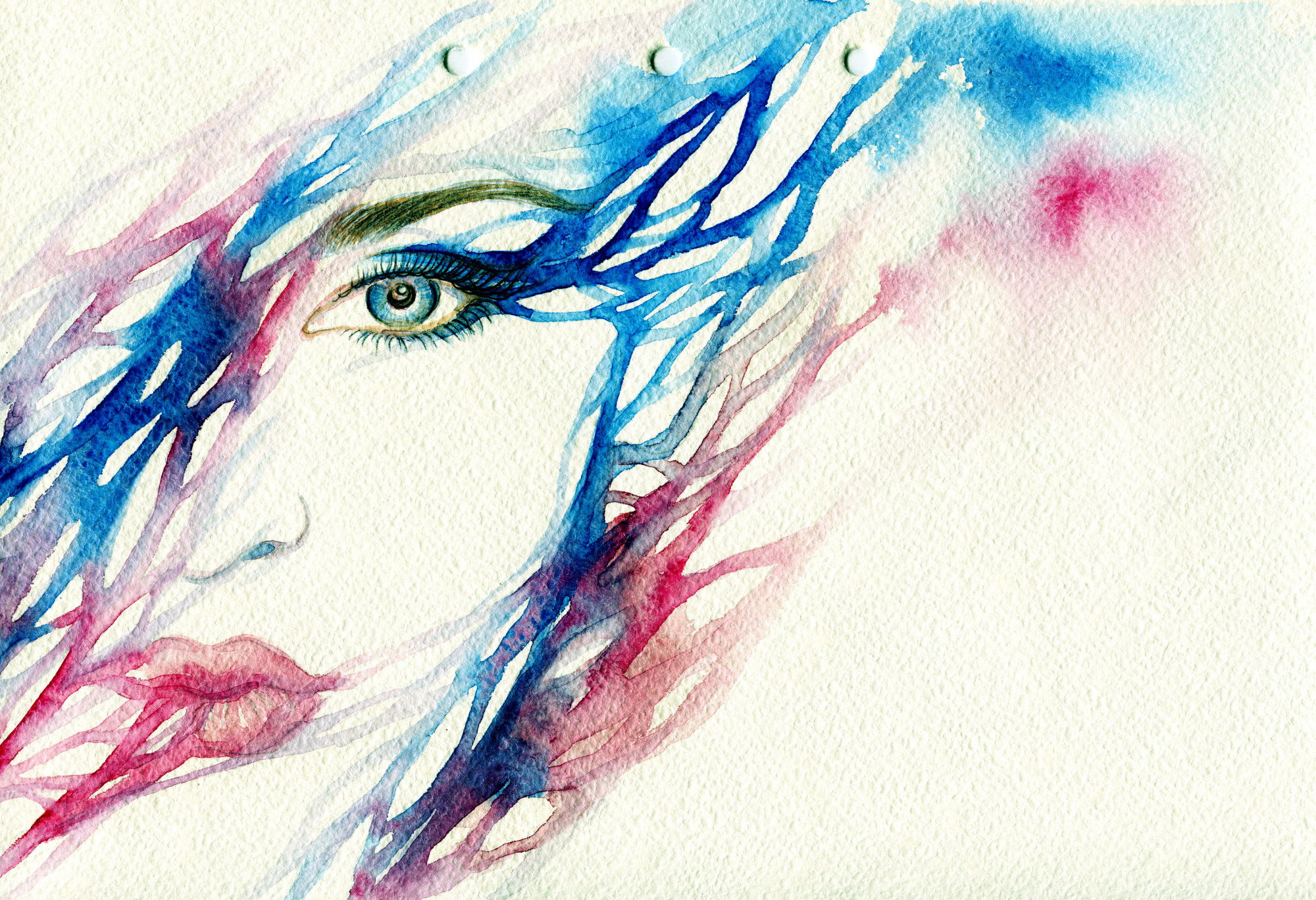 Ljuddämpande tavla – Watercolor woman face för lugnare rum och mjukare akustik