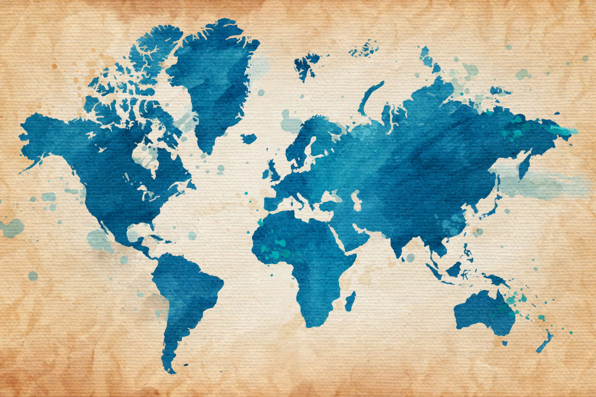Ljuddämpande tavla – World map in blue tones för lugnare rum och mjukare akustik