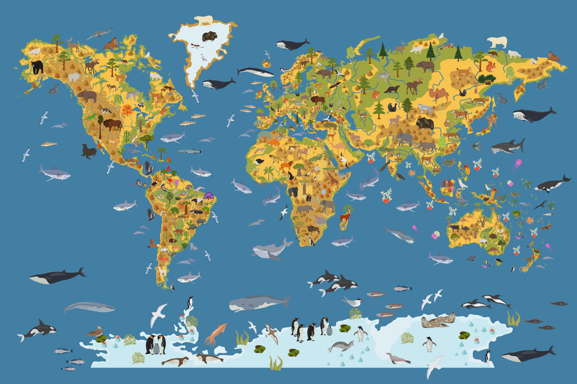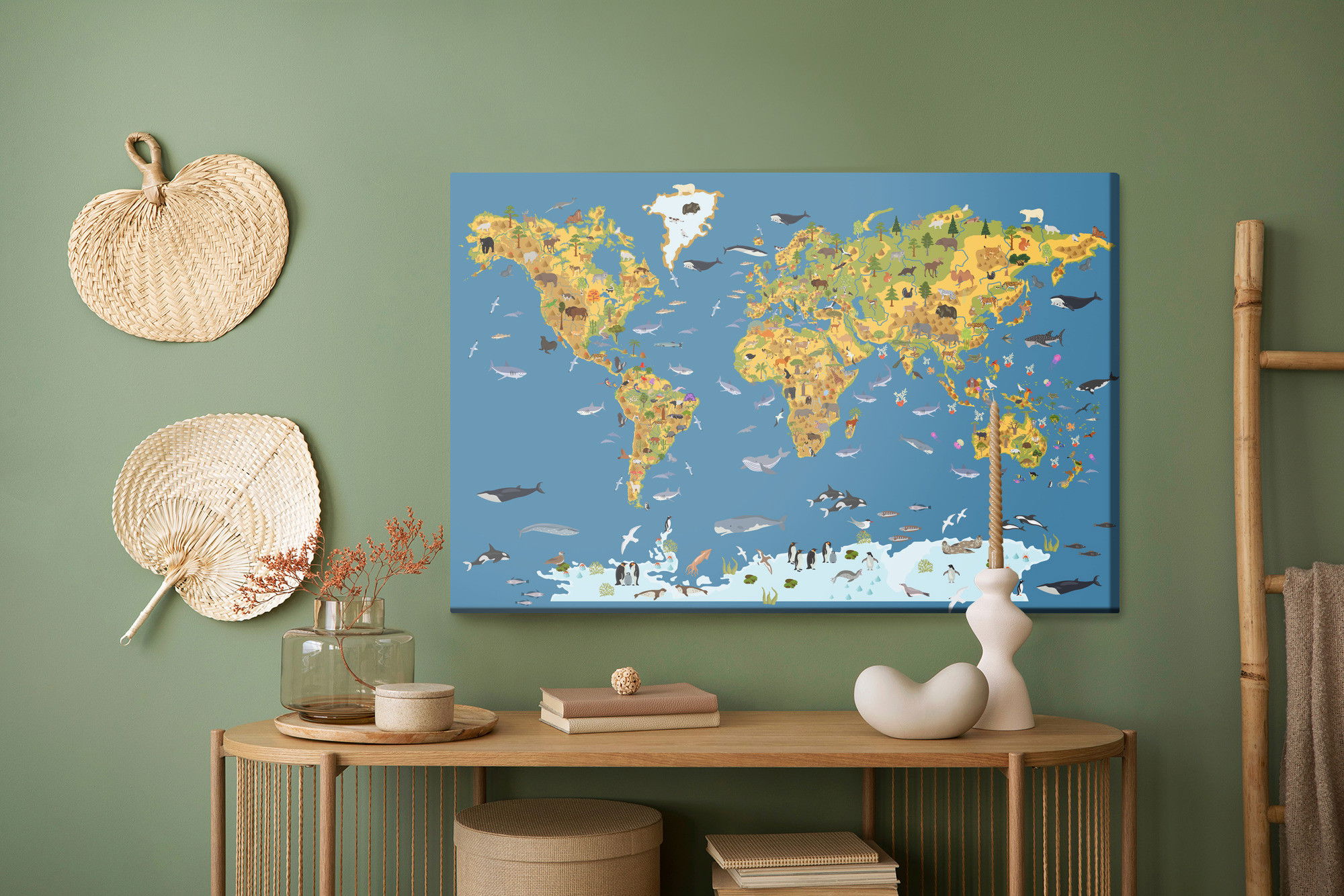 Ljuddämpande tavla – World map with animals för lugnare rum och mjukare akustik