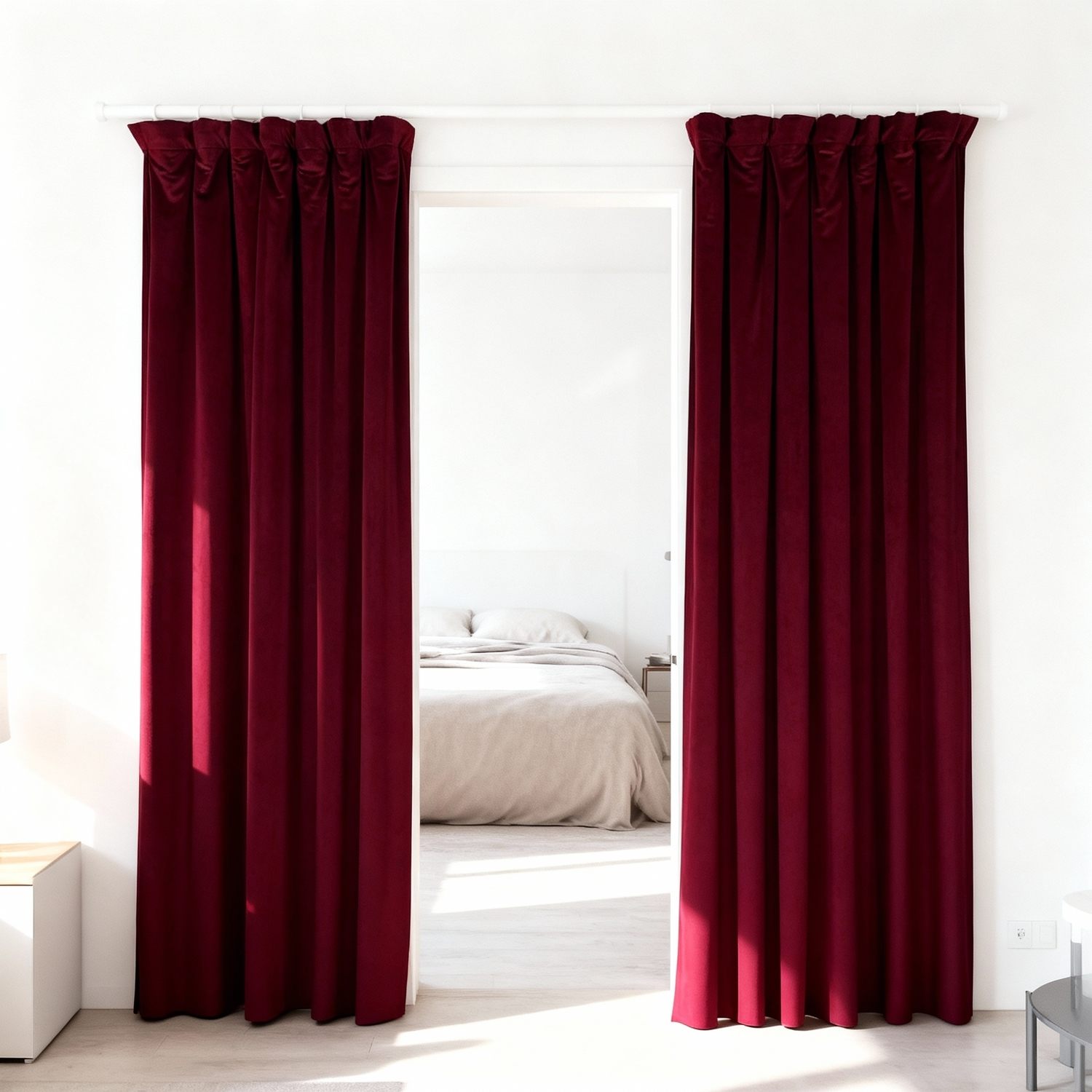 | Materials | Front: Heavy velour fabric in 100% polyester. Intermediate layer 1 (optional): Blackout material in 100% polyester. Intermediate layer 2: Acoustic fleece in 100% polyester. Back: Heavy velour fabric in 100% polyester. |