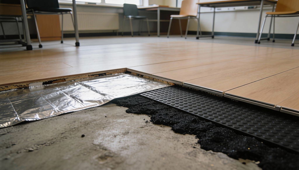 Sound insulation of floors should not be confused with sound absorption. Floor insulation stops sound between different rooms, while sound-absorbing solutions on walls, ceilings, with sound-absorbing curtains or room dividers are used to reduce echo and reverberation within the same space. In school environments, these measures are often combined to both limit sound propagation and create pleasant acoustics in classrooms and common areas.