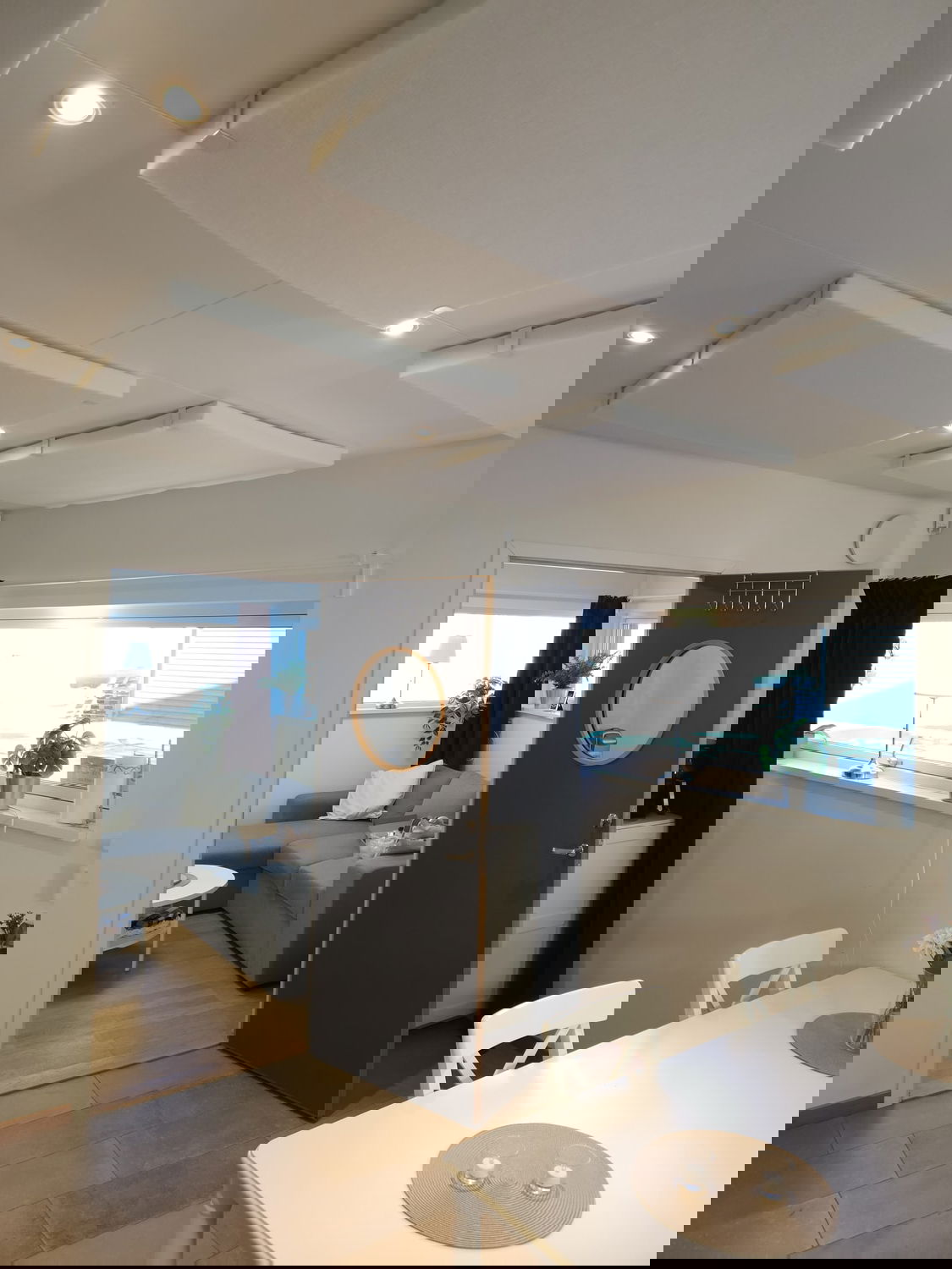 Bra är om man planerar för ljudabsorbenter i hela taket där man får plats med, men man börjar endast med att sätta över borden. Då kommer man ha möjlighet att sätta upp fler om det skulle behövas utan att man bryter layouten/utseendet i taket för mycket så det ser balanserat och bra ut Går det är mitt tips att försöka hålla sig inom max 30-50cm mellan ljudabsorbenterna ovanför bordet.